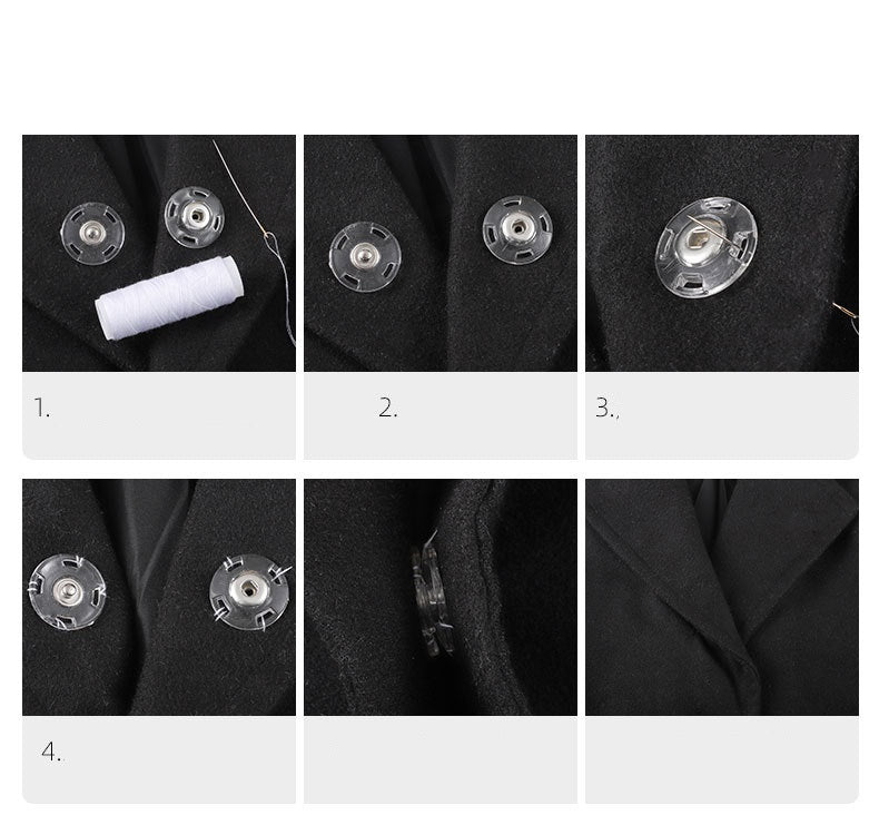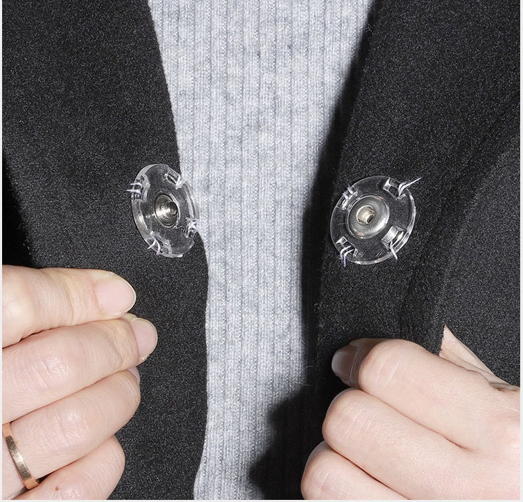 Tyto 18-25mm průhledné plastové a kovové patentní knoflíky jsou ideální volbou pro kašmírové kabáty. Kombinace průhledného plastu a kovu dodává moderní a elegantní vzhled.