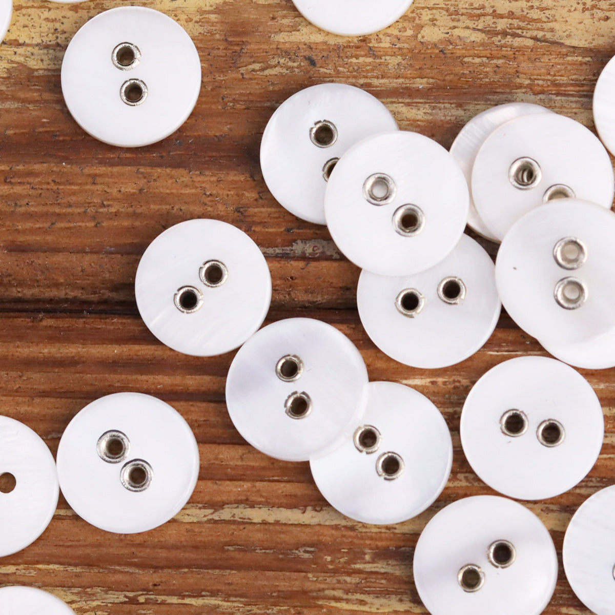 18L kovové knoflíky s průchodkou z perleti - dvoudírkové černé a bílé přírodní perleťové kulaté knoflíky pro dětské oblečení, balení 30 ks (2 barvy)