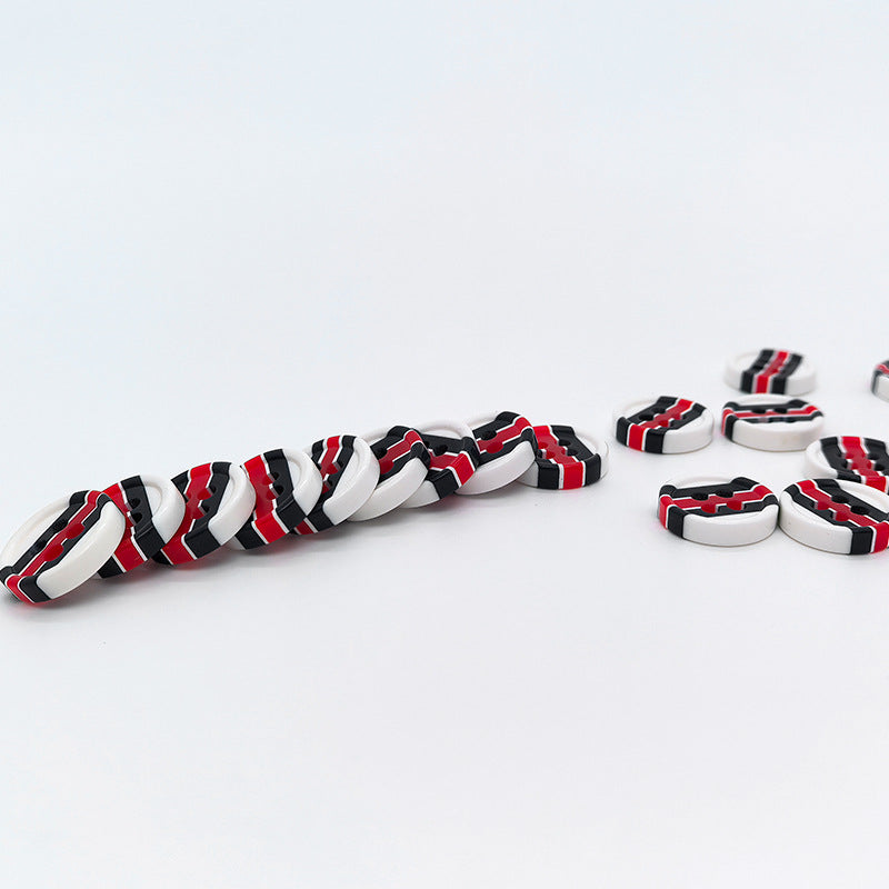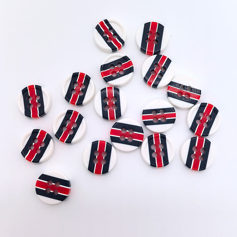 18L pruhované červeno-černé kulaté knoflíky na košile z pryskyřice 100 ks