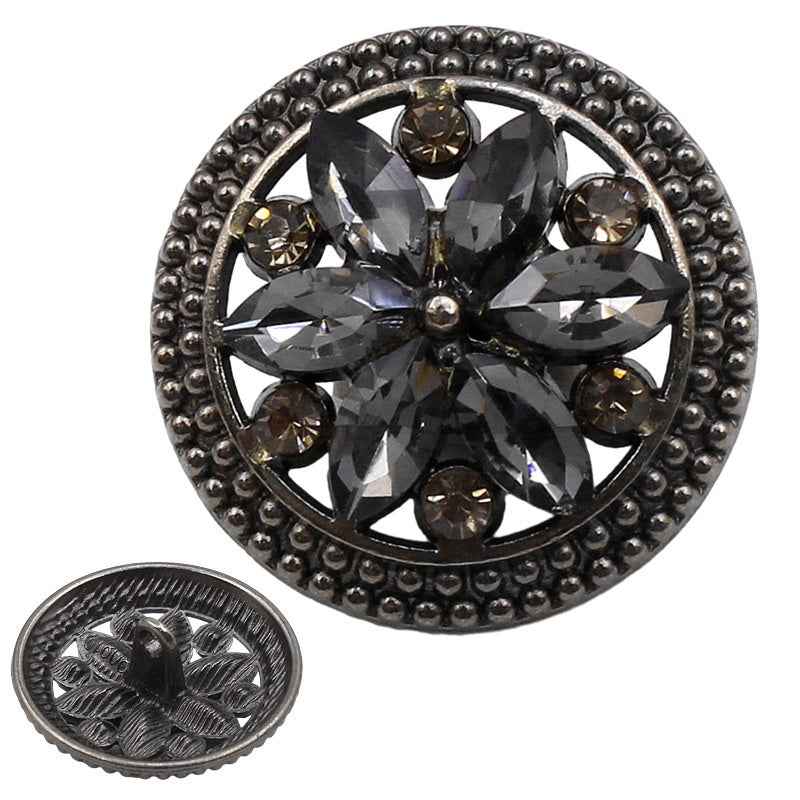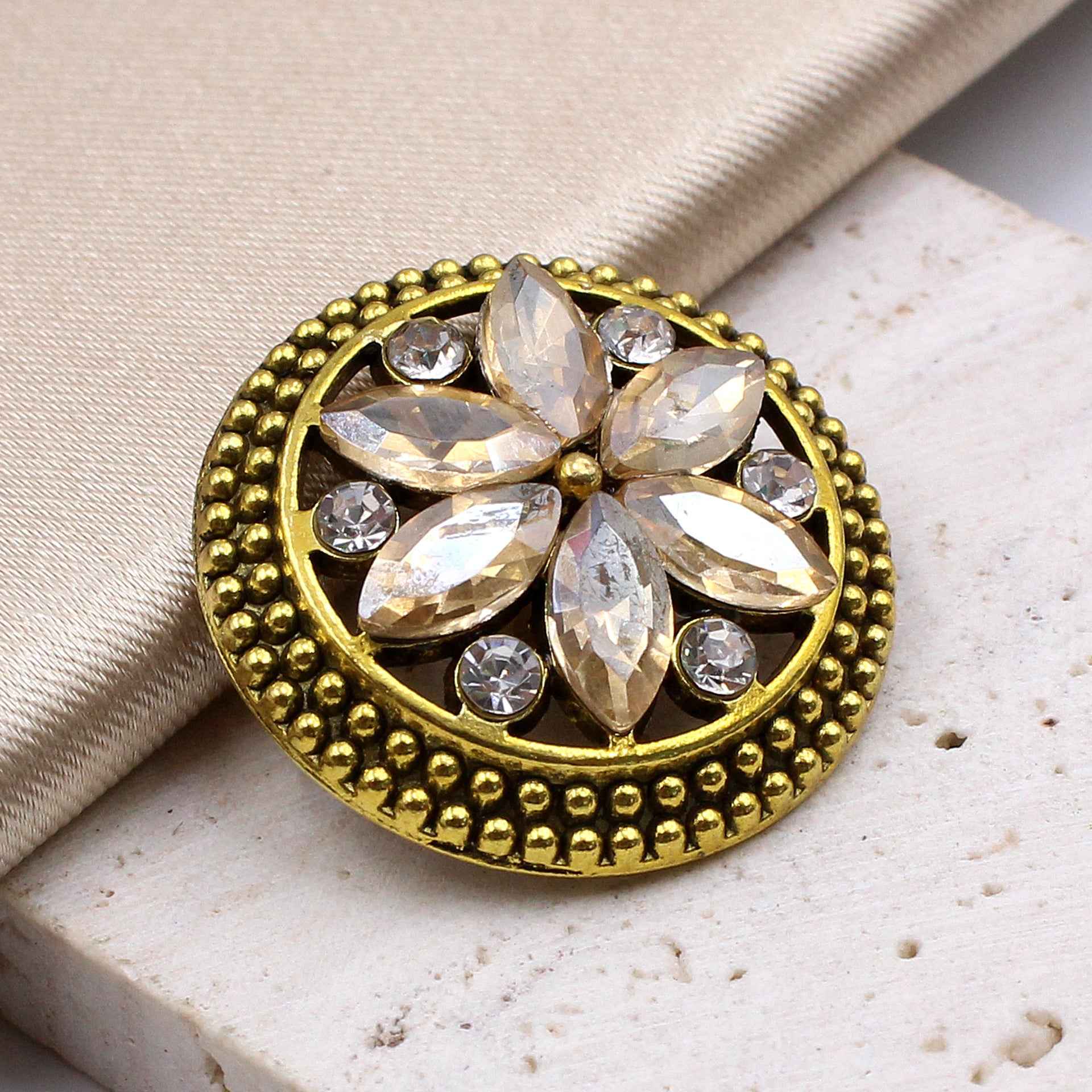 Vintage květinový design – Má klasický kulatý tvar s propracovanými krystalovými květy a diamantovými akcenty, ideální pro přidání retro kouzla oděvům.