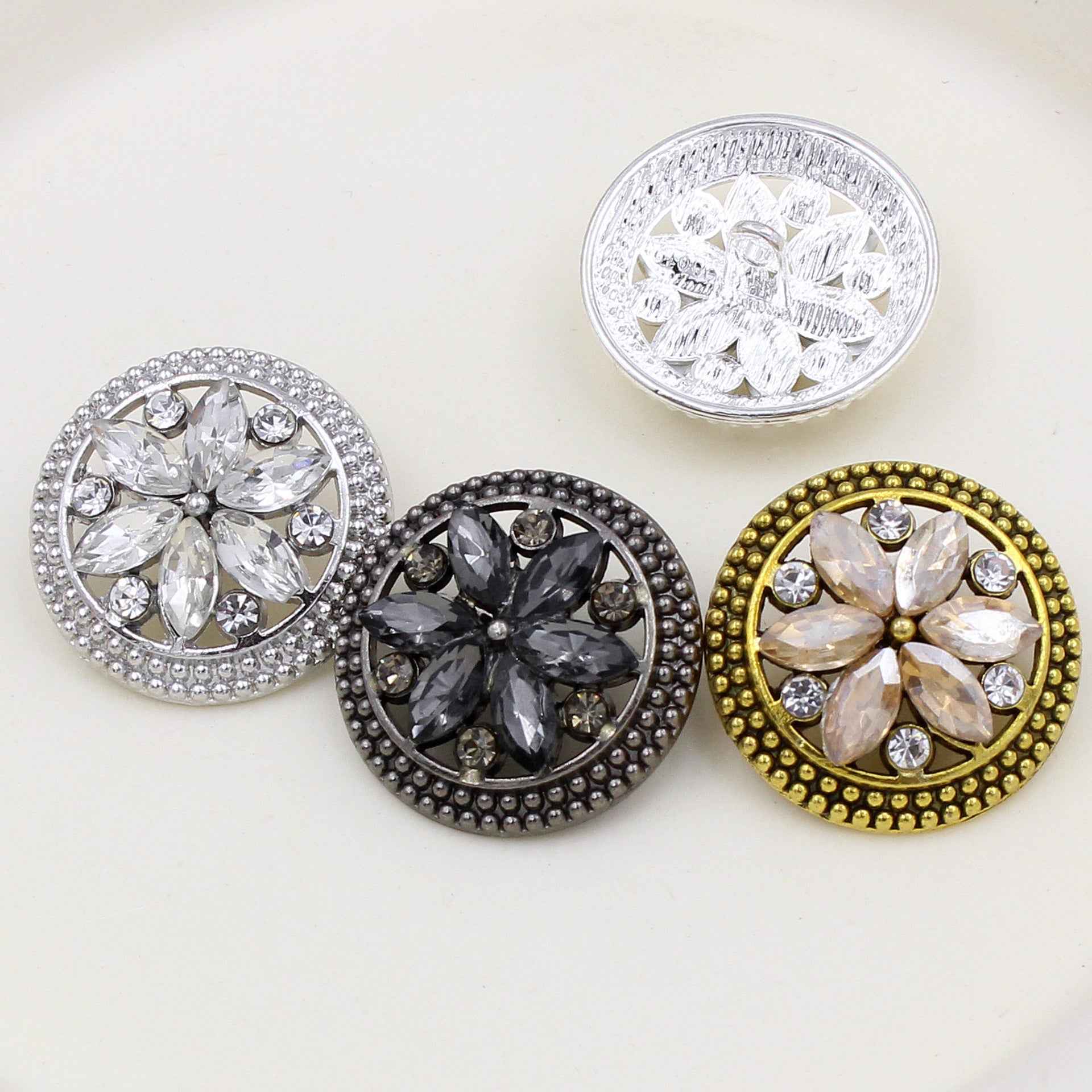 18MM/24MM kulaté knoflíky z vintage slitiny s krystalovými květinami a diamanty – Elegantní ozdoby pro módu a řemesla 12KS