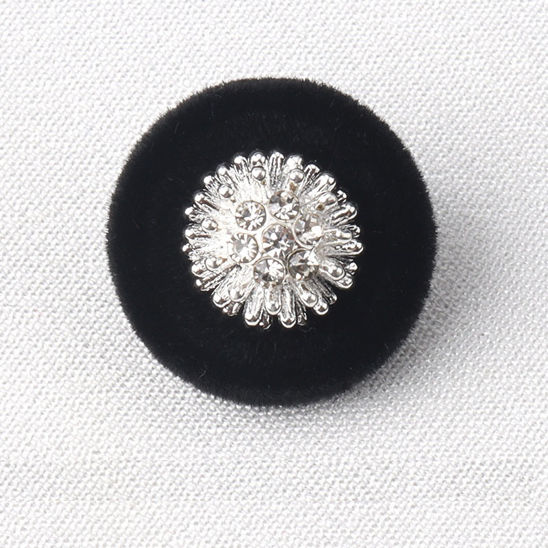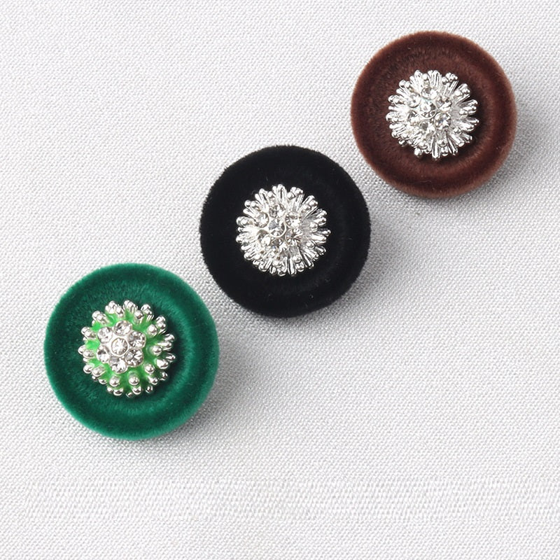18mm černé, hnědé, zelené sametové kovové knoflíky s diamantovými vsadkami a očky - módní knoflíky pro svetry a kabáty 6ks