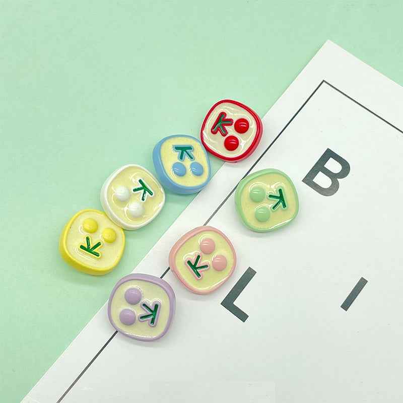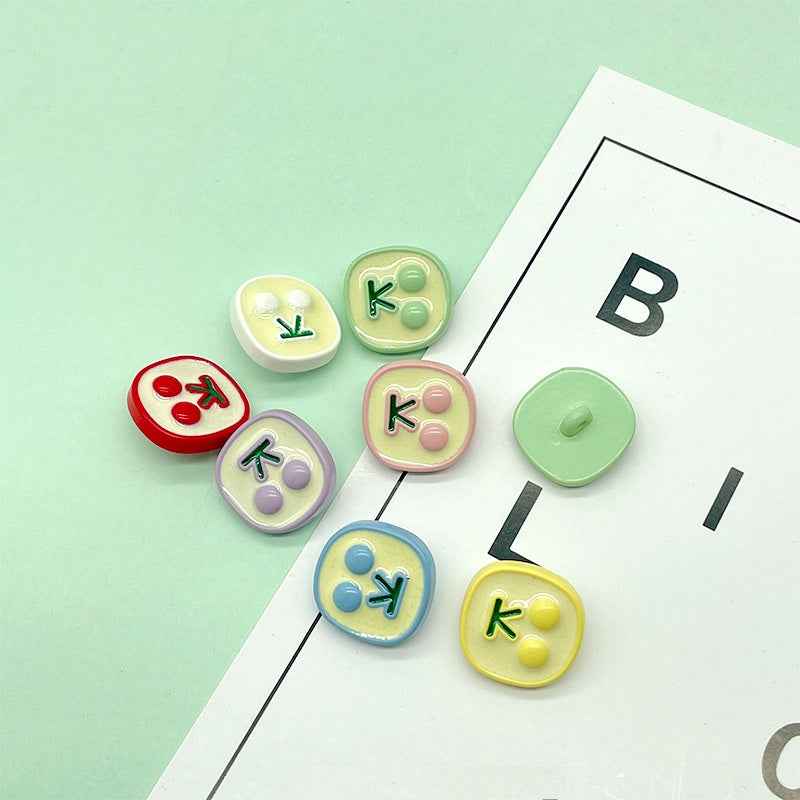 18mm Barevné a Roztomilé Čtvercové Plastové Knoflíky s Epoxidovým Vzorem Třešní a Očkem pro Dětské Oblečení, 196 kusů (7 Smíšených Barev)