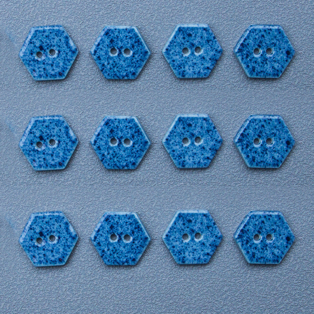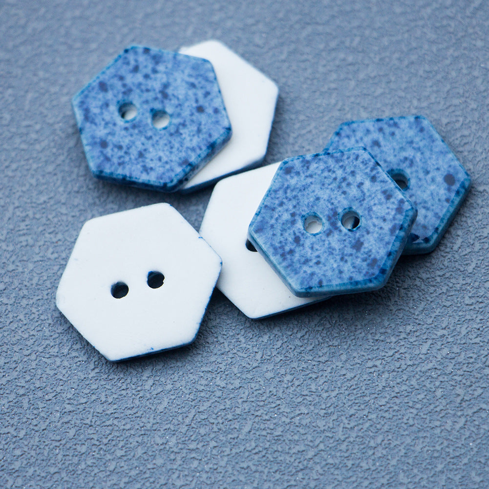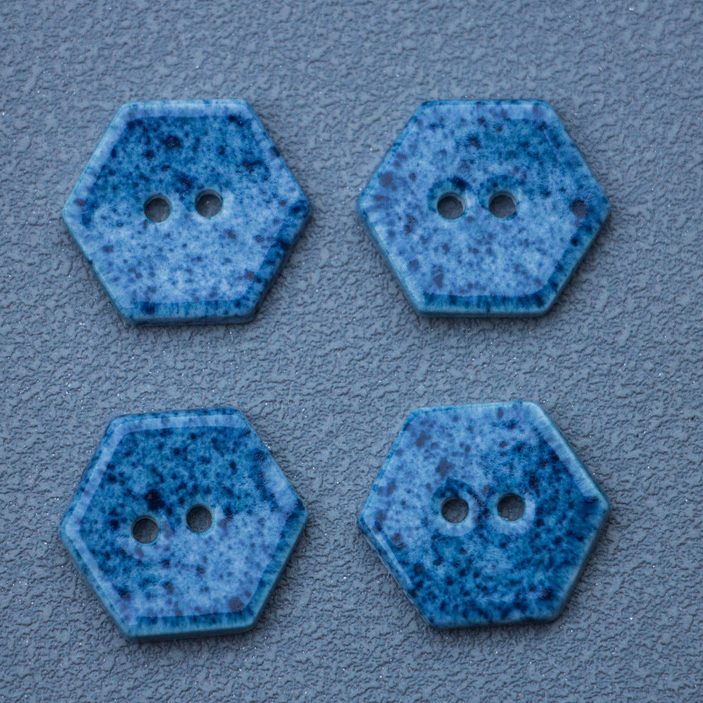 18mm námořnicky modré modré šestihranné 2 dírkové ručně vyráběné keramické knoflíky 6 kusů