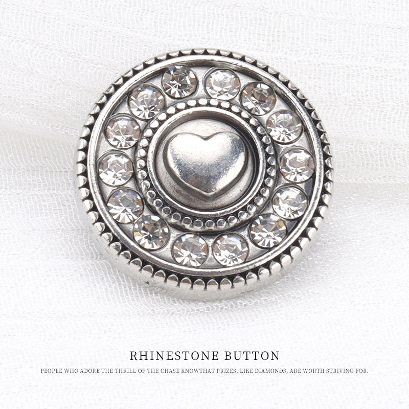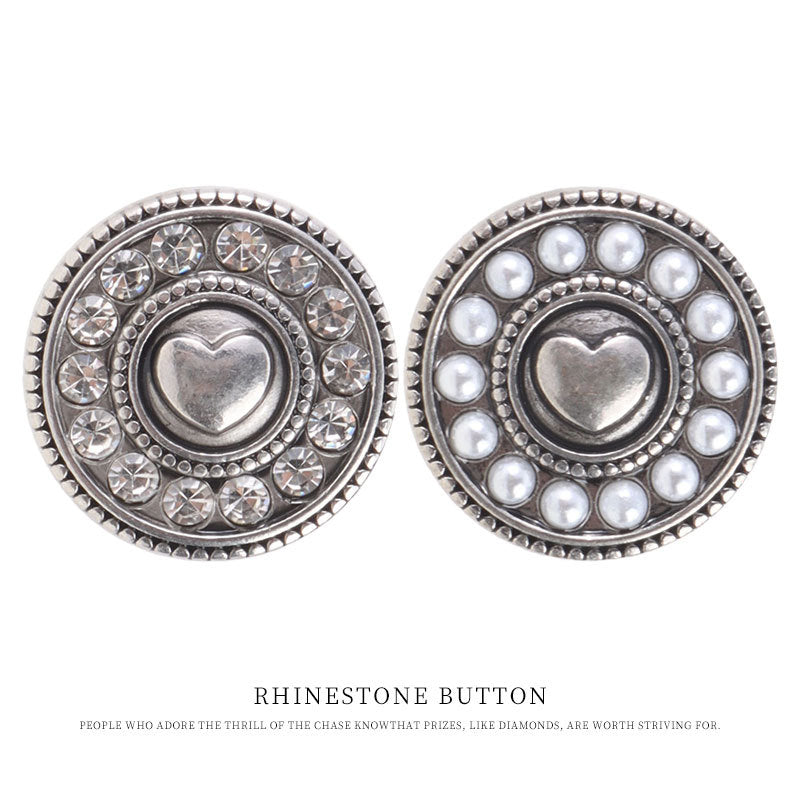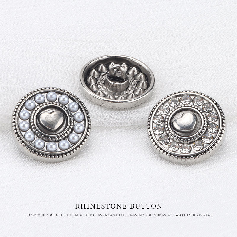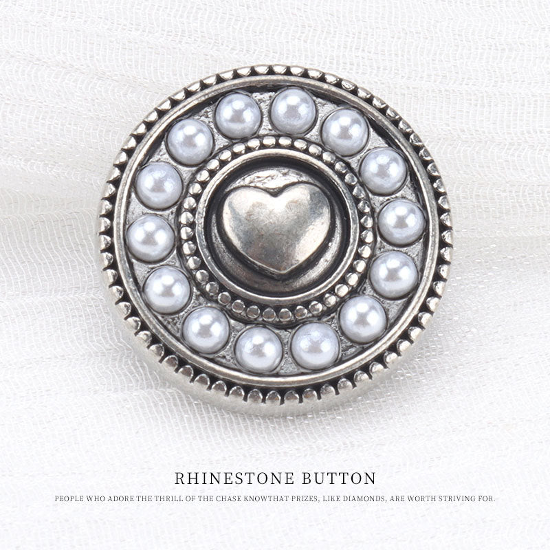19mm Vintage Srdce Perla Diamant Starý Stříbrný Kovový Knoflík 6ks
