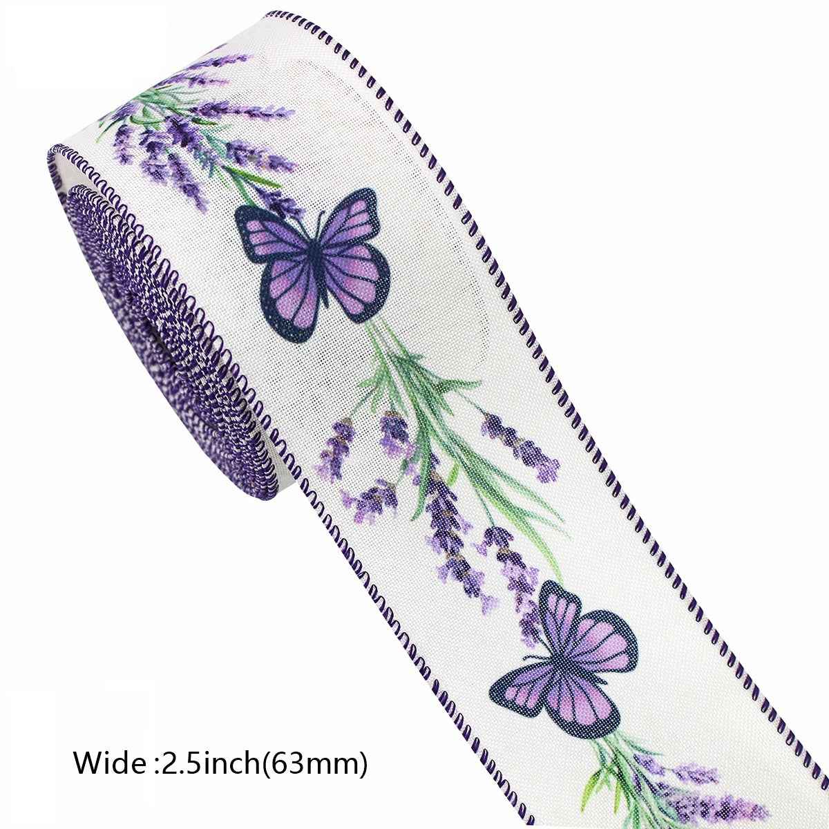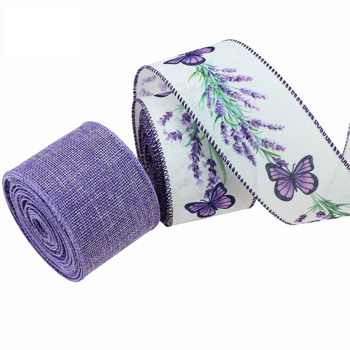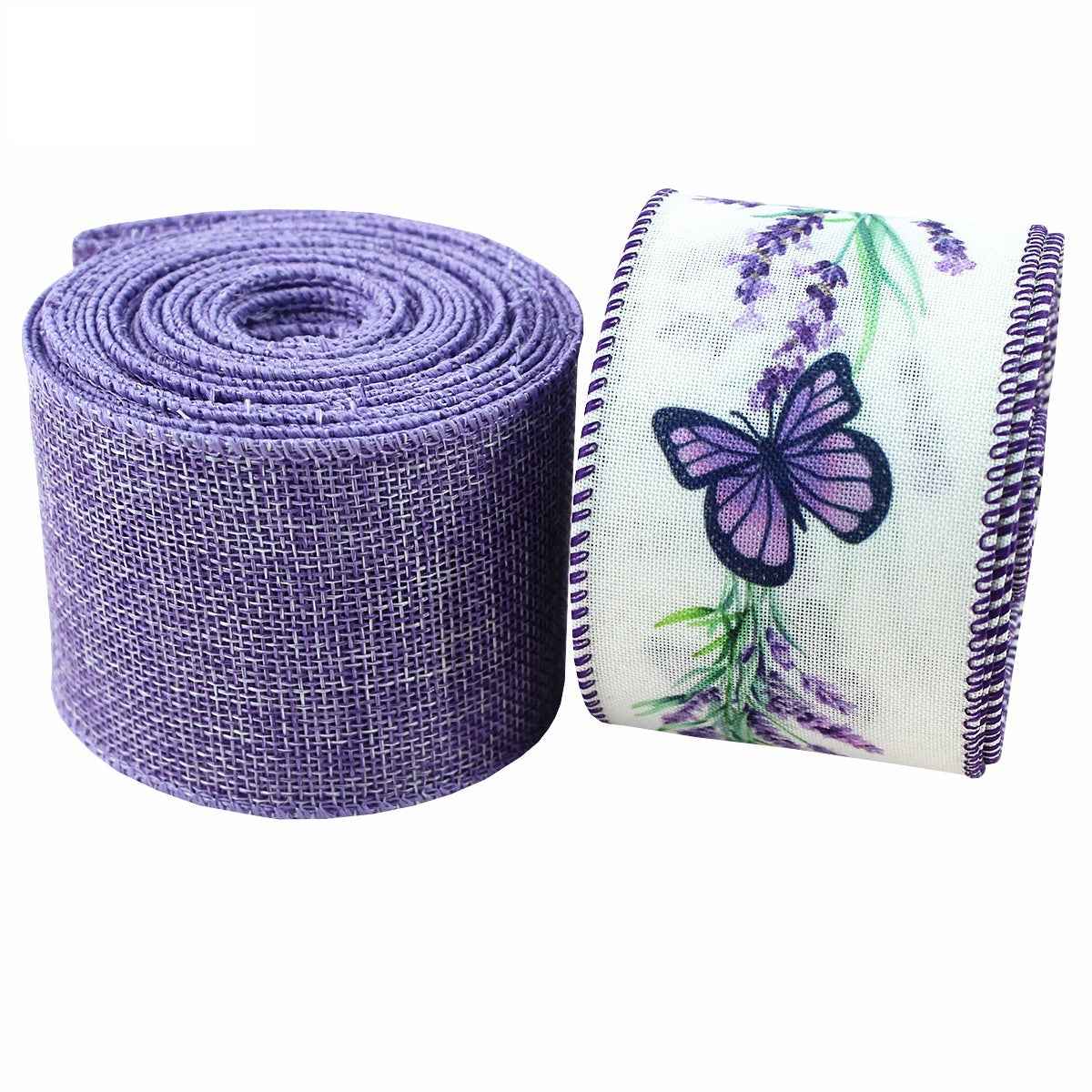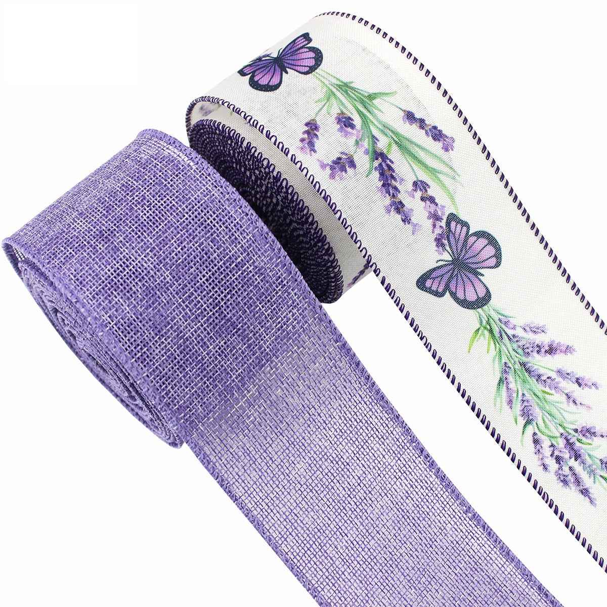 Fialová stuha s motýlím okrajem a drátem 2,5 palce – DIY mašle, věnec, šití a balení dárků, 2 balení, 5 yardů na roli