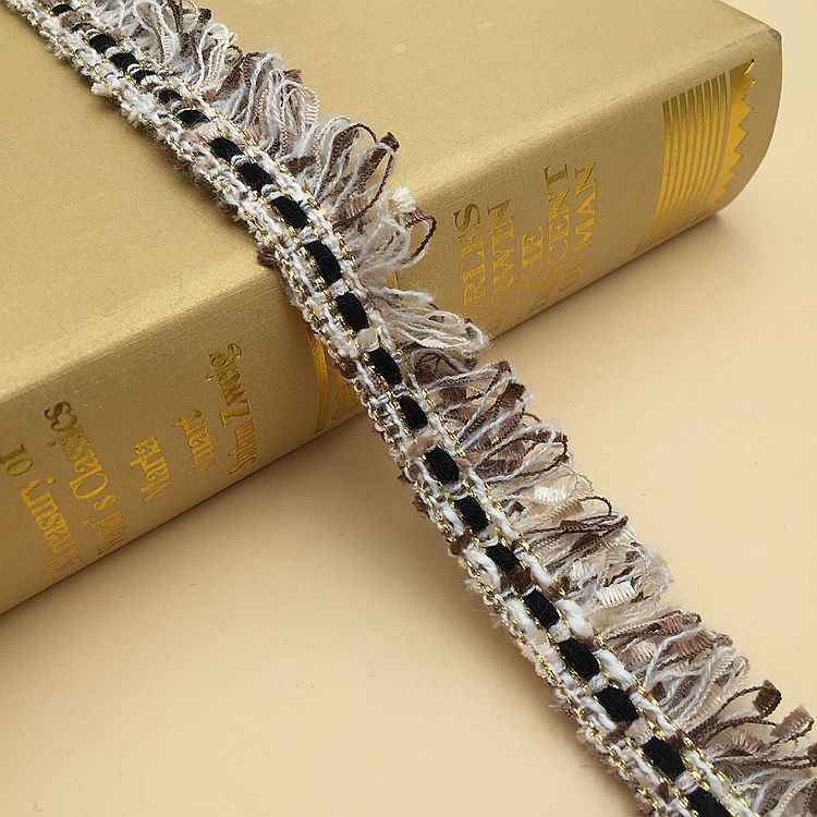 2.5CM široký lem s třásněmi zlatá/stříbrná tkaná stuha 10 yardů