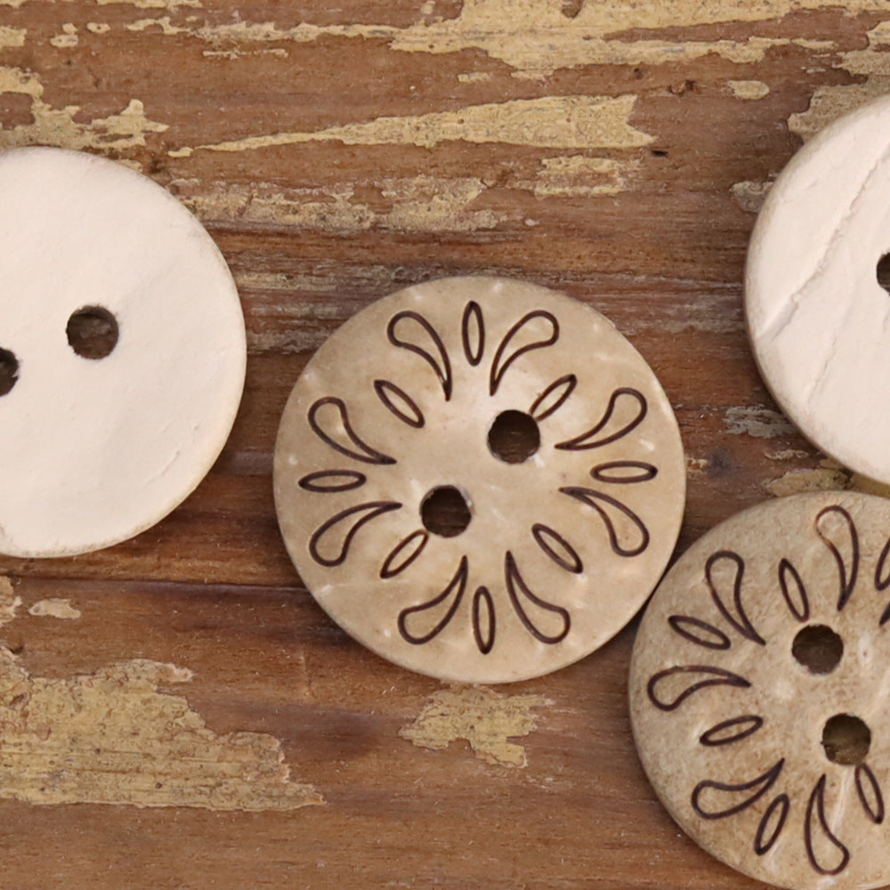 Představujeme tyto vynikající přírodní zahuštěné bílé dřevěné knoflíky velikosti 20-24L. Precizně a pečlivě vyrobené knoflíky mají krásný laserem vytvořený vzor, který dodává elegantní nádech. Přírodní dřevěný materiál jim propůjčuje teplý a rustikální vzhled, zatímco zahuštěná konstrukce zajišťuje jejich odolnost a dlouhou životnost. Díky dvěma dírkám se snadno připevňují na různé látky. Ať už je používáte na oblečení, doplňky nebo dekorace do domácnosti, tyto knoflíky jistě zaujmou. Jejich jedinečný design a vysoce kvalitní zpracování je činí skvělou volbou pro ty, kteří oceňují přírodní krásu a jemné detaily.