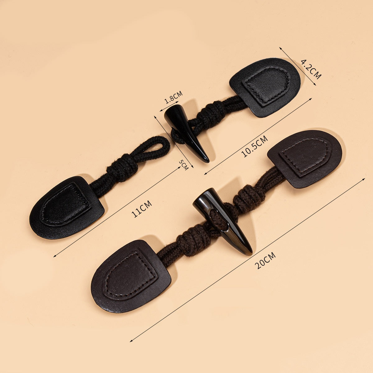 Tento jedinečný produkt obsahuje 20cm knoflíků na přišití, které jsou navrženy tak, aby zvýraznily kouzlo vašeho oblečení a doplňků. Knoflíky jsou vyrobeny z kombinace vysoce kvalitní černé a tmavě kávové kůže, která nejenže dodává klasický a elegantní vzhled, ale také zajišťuje odolnost a pevnost. Přídavek pryskyřičných prvků z buvolího rohu přináší nádech přírodou inspirované krásy a rustikálního kouzla. Detaily rohu jsou pečlivě zpracovány tak, aby napodobovaly skutečnou texturu a vzhled, což je činí výrazným prvkem. Tyto knoflíky jsou ideální pro přišití na kabáty, bundy, tašky nebo jakékoliv jiné předměty, které vyžadují nádech sofistikovanosti. Délka 20cm poskytuje dostatečnou zásobu pro více projektů, což vám umožní uvolnit vaši kreativitu a přidat osobní dotek vašim výtvorům. Ať už jste profesionální designér nebo nadšenec do DIY, tyto knoflíky jistě splní vaše potřeby a překročí vaše očekávání jak po stránce stylu, tak funkčnosti.