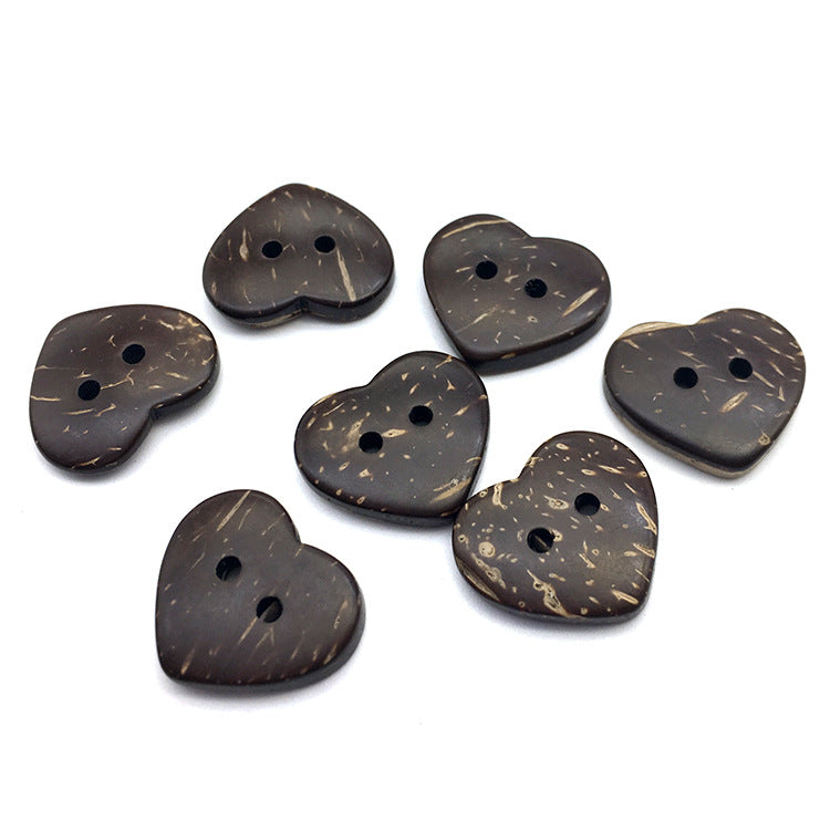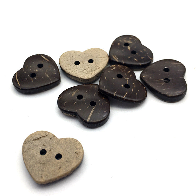 20mm knoflíky na košile ve tvaru srdce ze skořápky kokosu se dvěma dírkami 20 ks