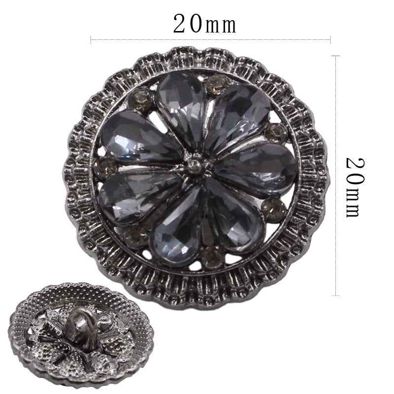 20mm Duté Geometrické Kulaté Knoflíky s Kamínky ze Slitiny na Šití 12ks