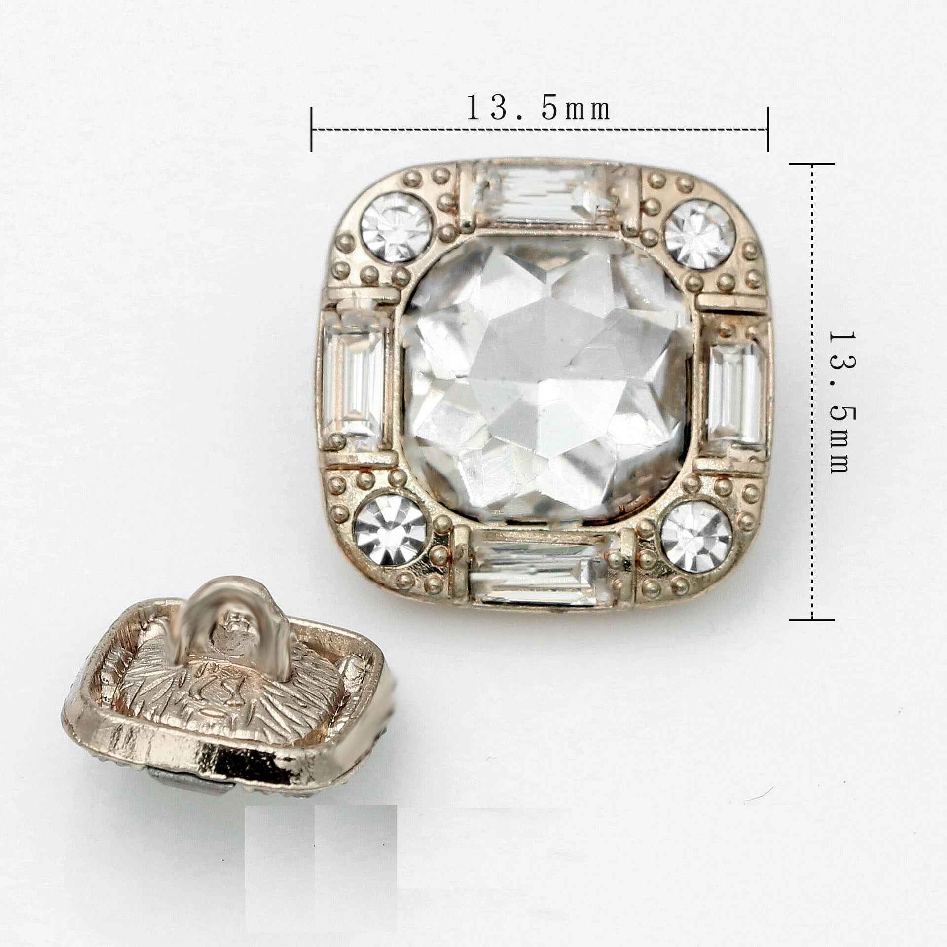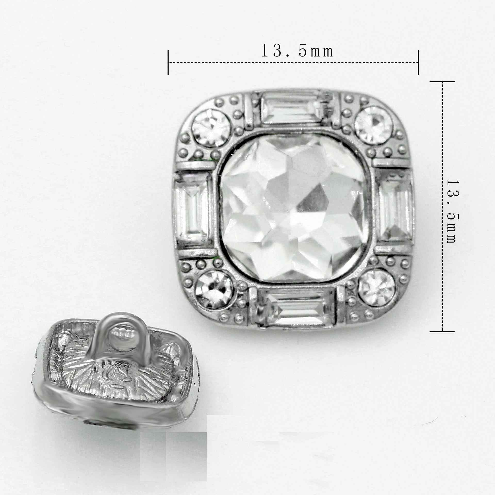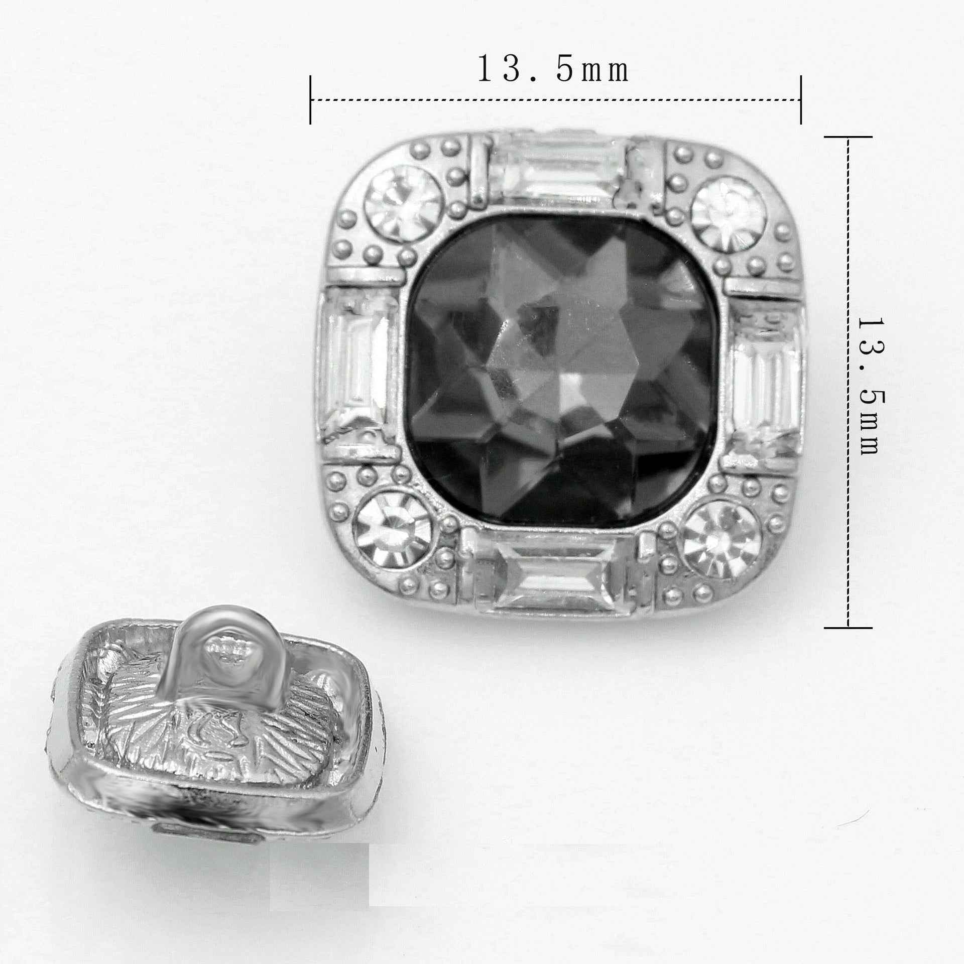 Knoflíky s kovovým dříkem, čtvercové skleněné krystaly a kamínky 13.5mm/16.5mm/20mm, 20 ks
