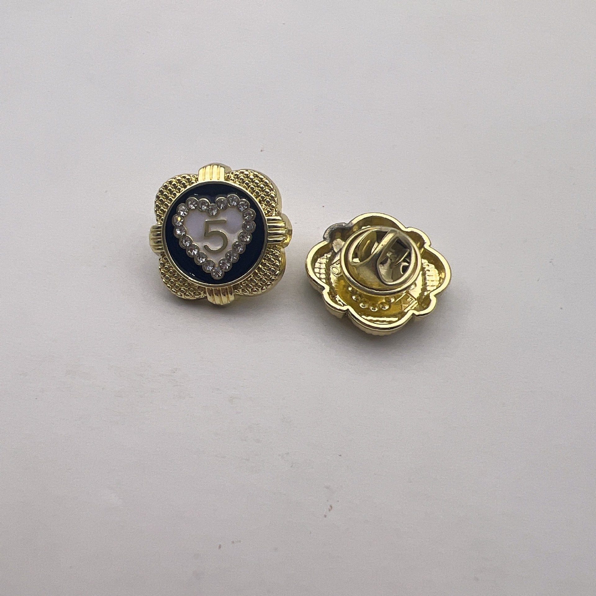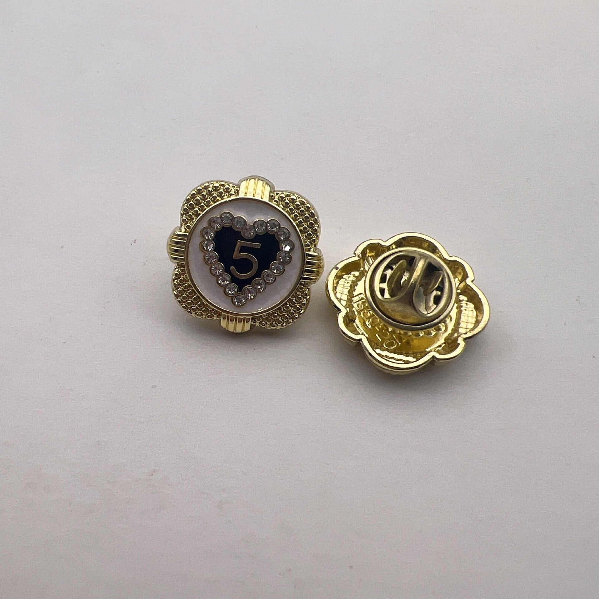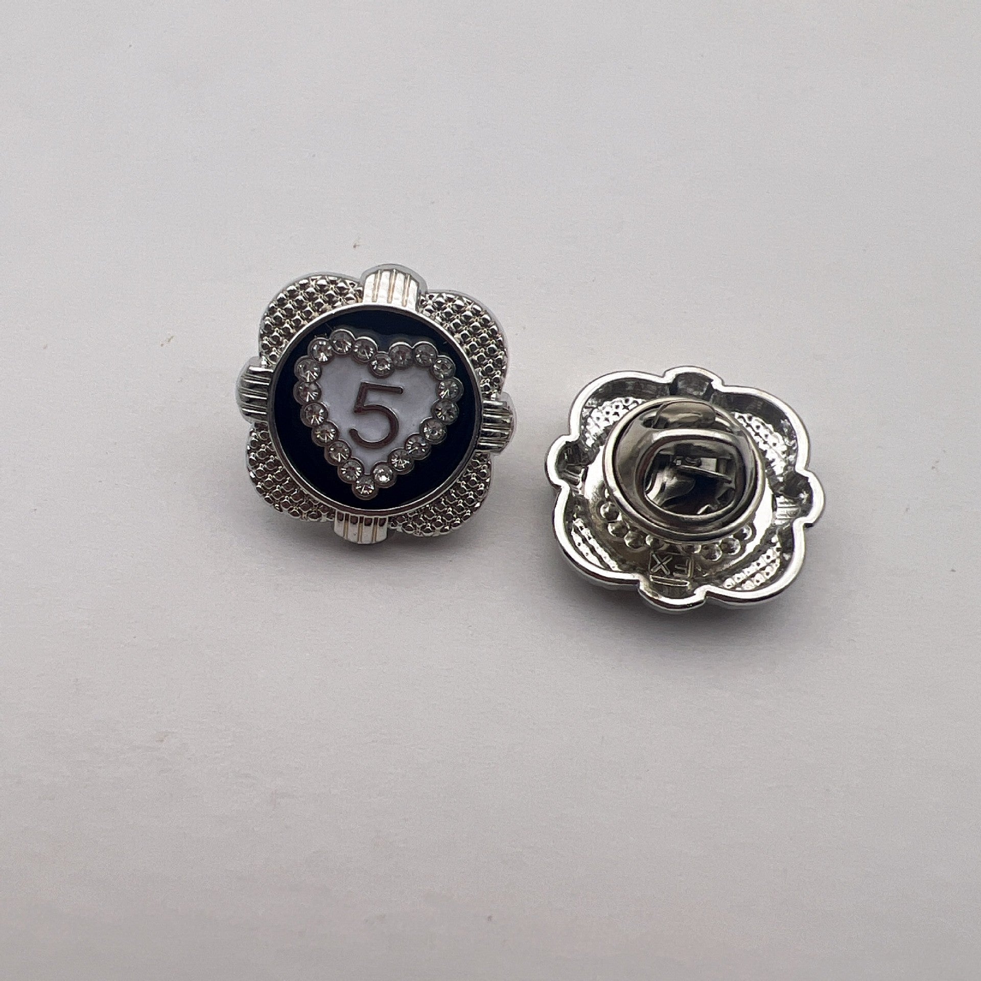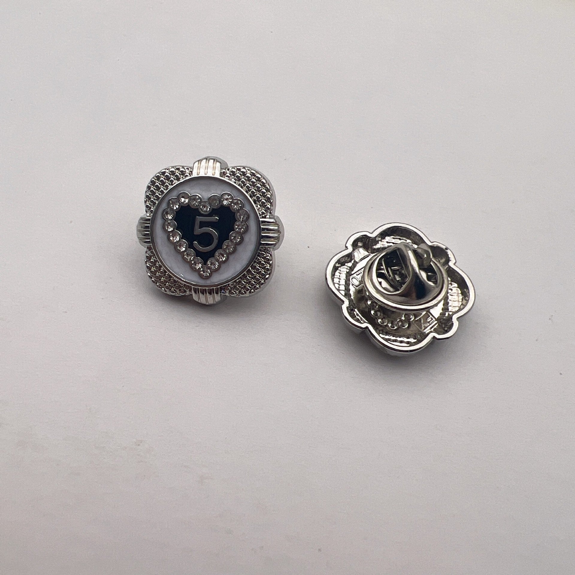 21mm brož ve tvaru srdce s číslem 5, zdobená diamanty, 10 kusů