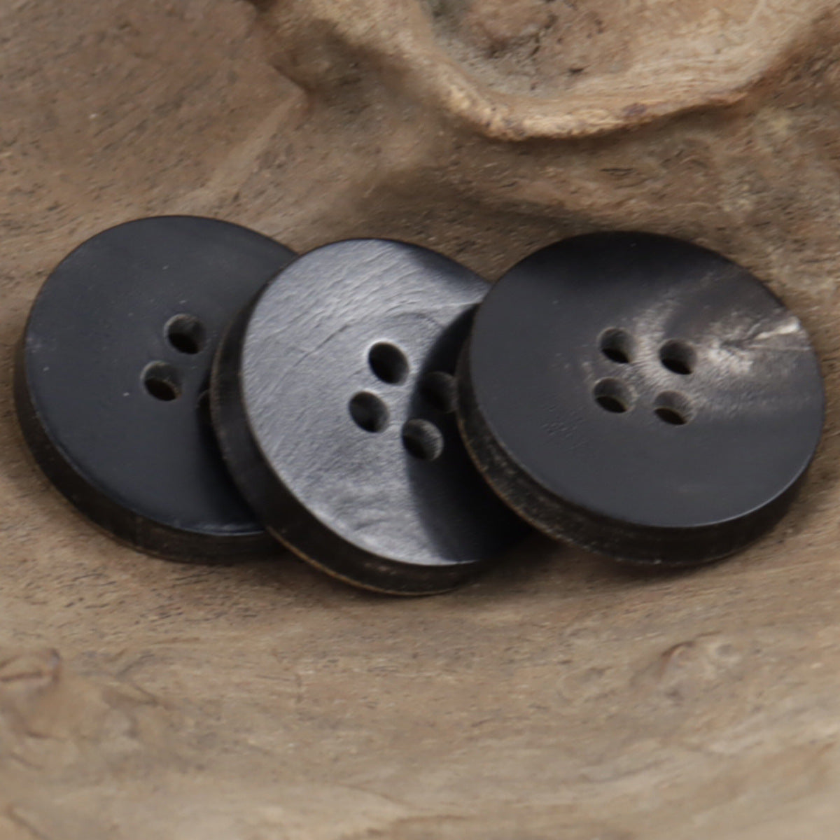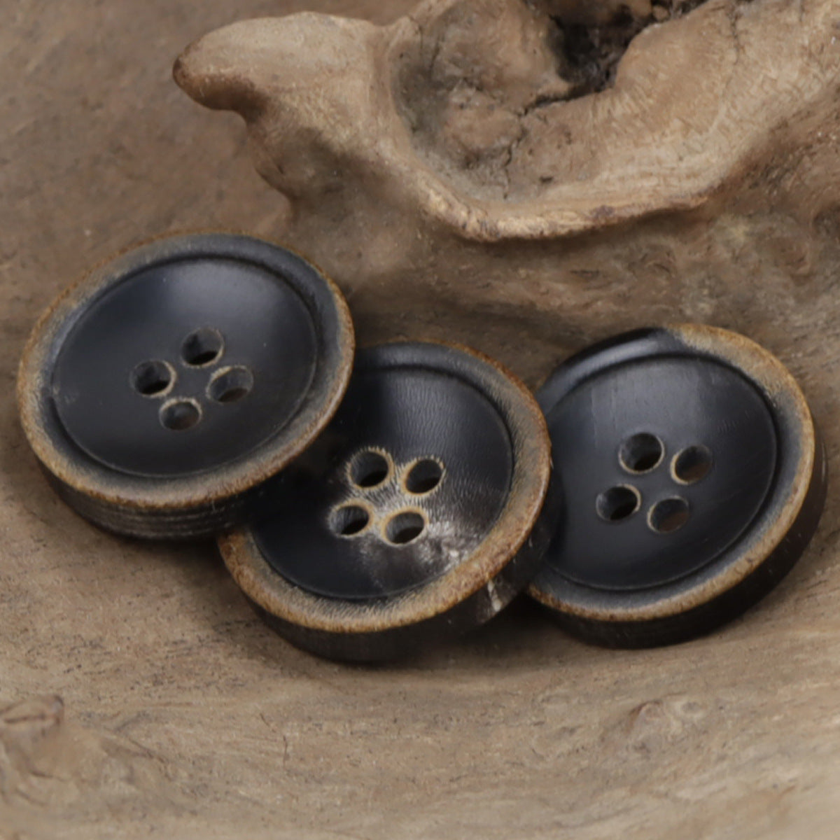 21mm vintage vypálené knoflíky ve tvaru misky z přírodního černého rohu se čtyřmi dírkami 10ks