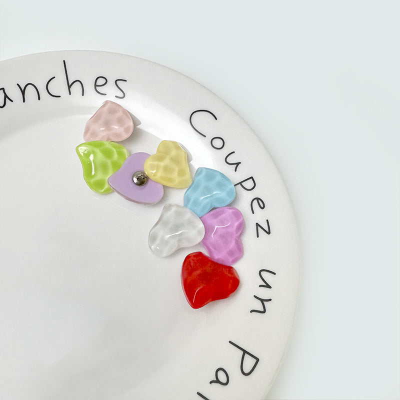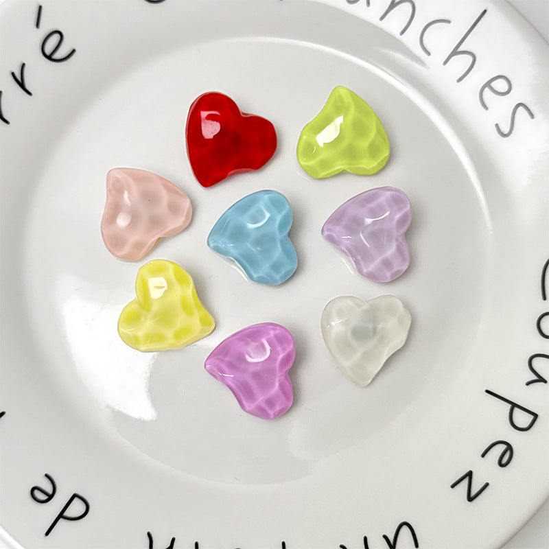 21mm pryskyřicové knoflíky s texturou vodních vln a 3D srdcem s kovovou základnou, balení 48 ks (8 smíšených barev)