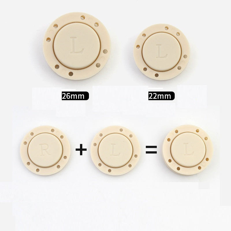 Tyto knoflíky o velikosti 22/26 mm kombinují odolnost nylonového plastu s magnetickou funkcí. Kulatý a barevný design je činí stylovým doplňkem různých předmětů. Jsou ideální pro kabáty, umožňují snadné zapínání a jedinečný vzhled. Vhodné jsou také pro tašky, kde poskytují praktické řešení zavírání. Při použití na závěsech pomáhají udržet upravený vzhled. Magnetická funkce zajišťuje pevné držení bez nutnosti šití v některých případech. Knoflíky jsou vyrobeny tak, aby vydržely pravidelné používání a různé povětrnostní podmínky. Jejich všestrannost a praktičnost je činí vynikající volbou pro zvýšení funkčnosti a estetiky různých textilních výrobků.