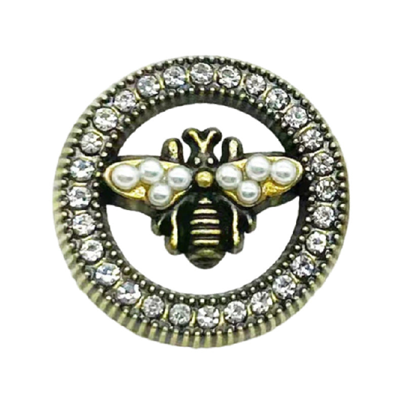 23mm Dutý Křišťálový Perlový Zlatý Včelí Kovový Knoflík 10ks
