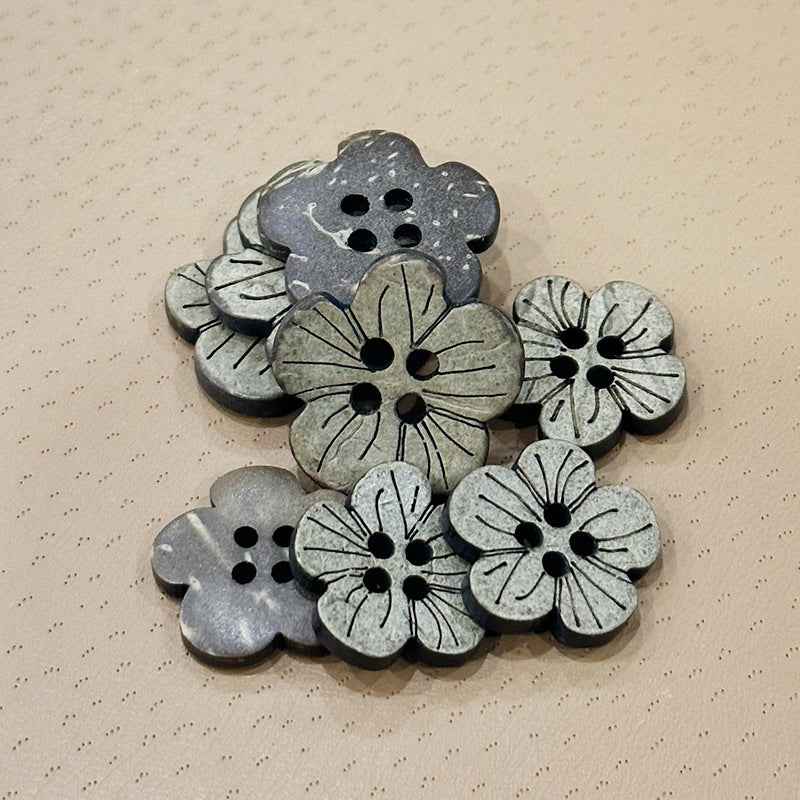 23mm knoflíky na boty z kokosové skořápky s motivem švestkového květu, vyřezávané laserem – 4dírové přírodní zapínání 40ks