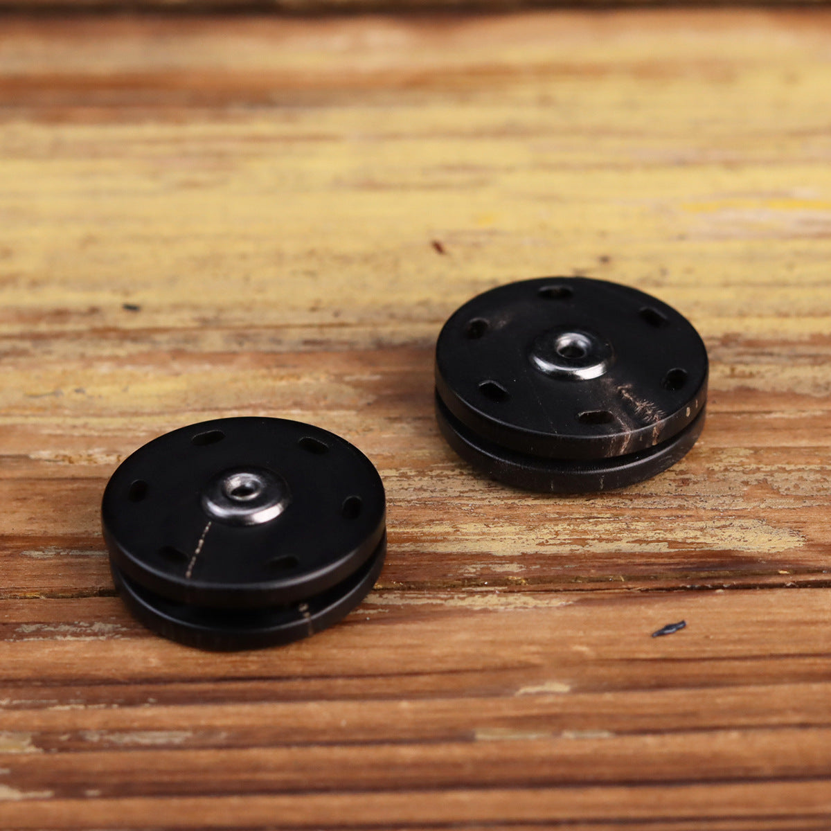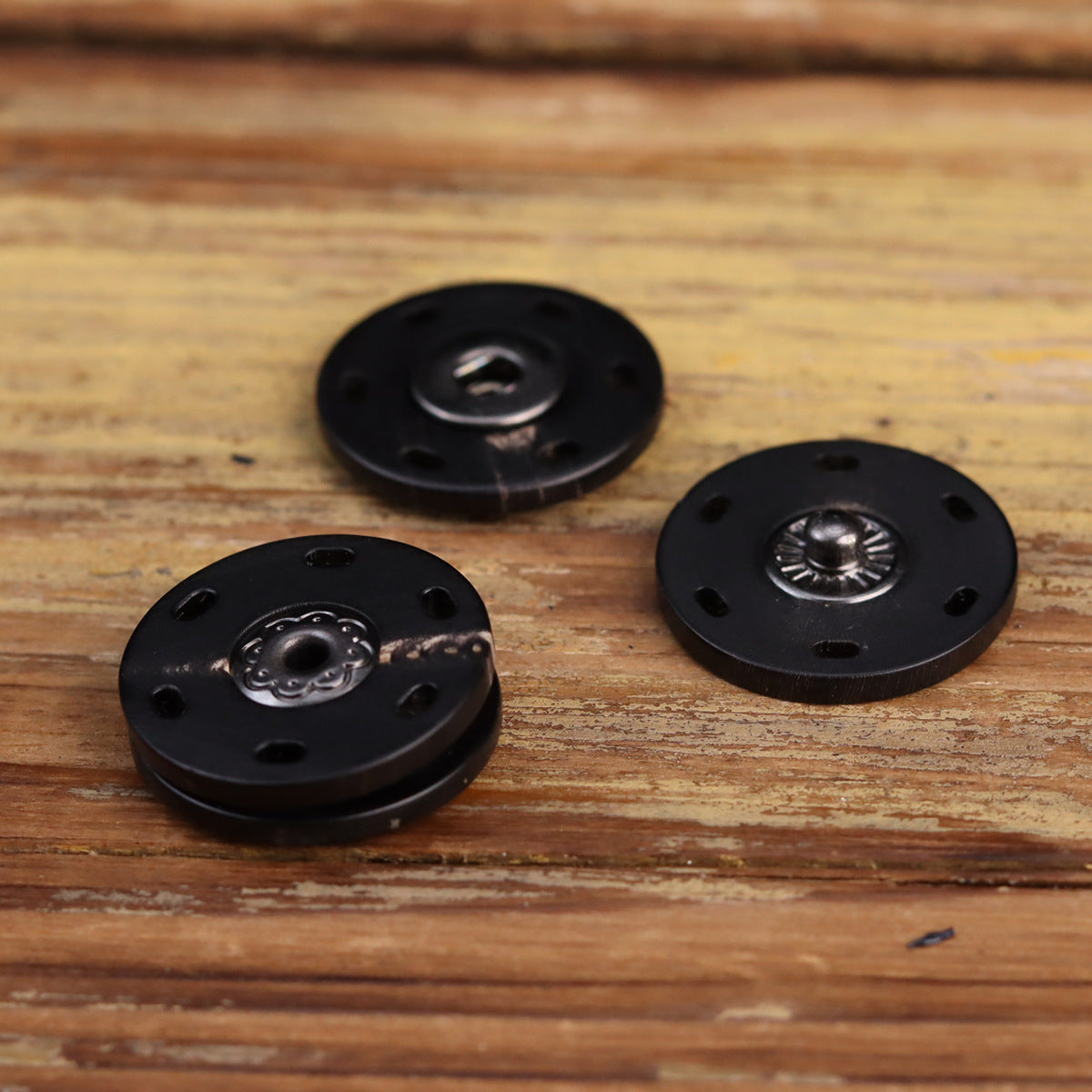 24-40L vysoce kvalitní přírodní černé knoflíky s patentem z pravého rohu - Ideální pro pánské větrovky a bundy 3ks