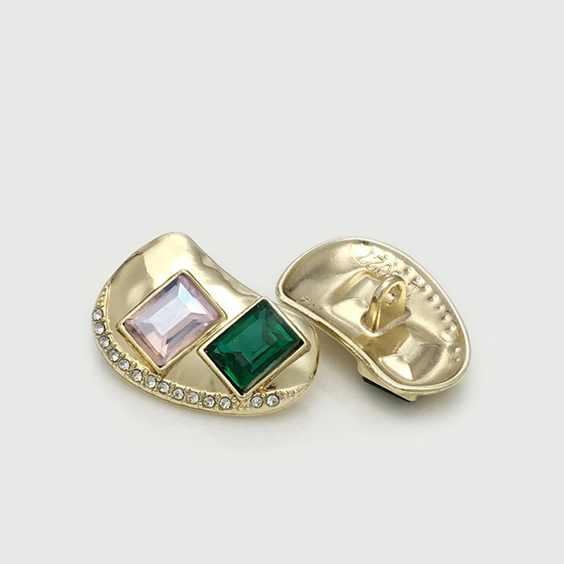 Tyto nádherné 24mm knoflíky jsou ztělesněním luxusu. Nepravidelný tvar se vymyká konvencím a dodává každému oděvu moderní a umělecký nádech. Vyrobené z lesklého zlata a stříbra okamžitě upoutají pozornost svým bohatým leskem. Co je skutečně odlišuje, jsou pečlivě zasazené čtvercové diamanty, které zdobí povrch. Tyto oslnivé drahokamy zachycují a lámou světlo, vytvářejíce okouzlující představení elegance. Vyrobené z vysoce kvalitního kovu, knoflíky nabízejí jak odolnost, tak elegantní povrchovou úpravu. Ideální pro zdobení večerních šatů, haute couture sak nebo výrazných kousků, promění váš výtvor v umělecké dílo vyzařující eleganci a sofistikovanost.