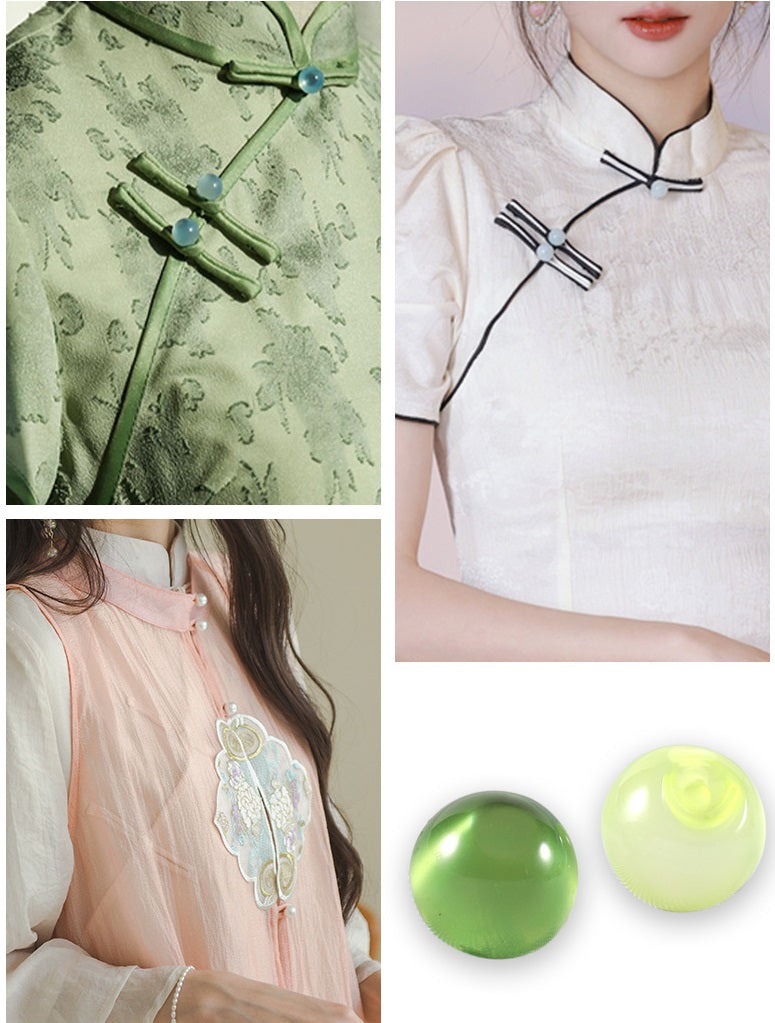 Tyto barevné kulaté knoflíky z pryskyřice ve stylu cheongsam jsou krásným doplňkem každého tradičního čínského oděvu. Díky designu napodobujícímu nefritové korálky a perleťovým akcentům vyzařují eleganci a sofistikovanost. Perfektní pro Hanfu, cheongsam, košile a halenky, tyto malé knoflíky přidávají šarm a vytříbenost.