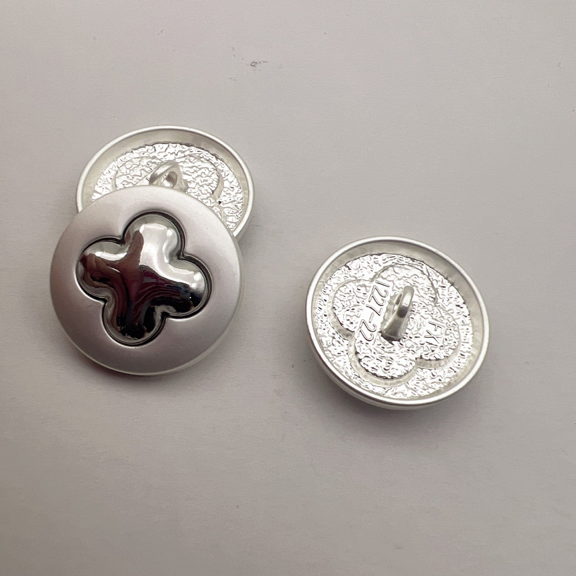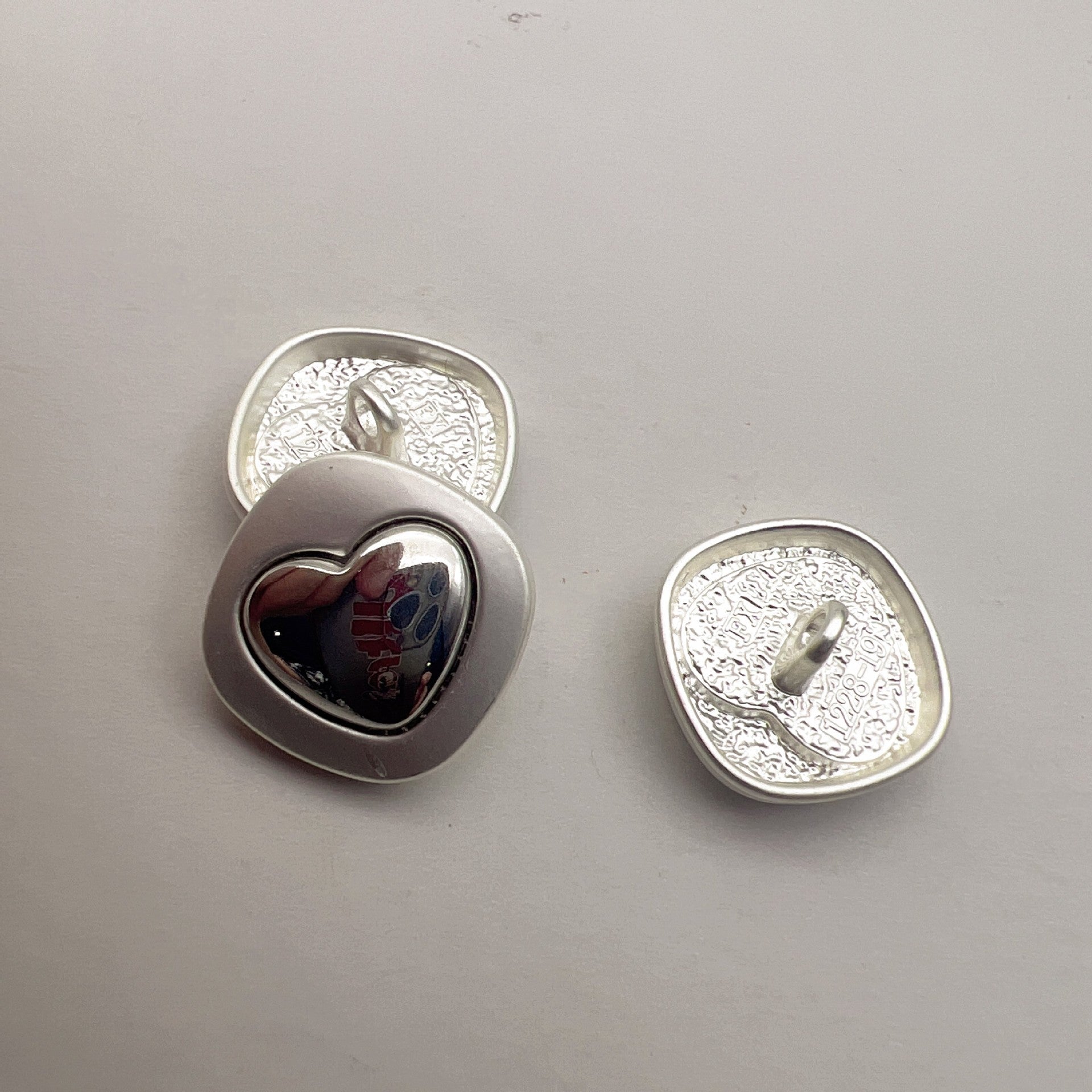 25mm Perleťově stříbrné knoflíky ve tvaru srdce s křížkem, kovové nožičkové, 50 ks
