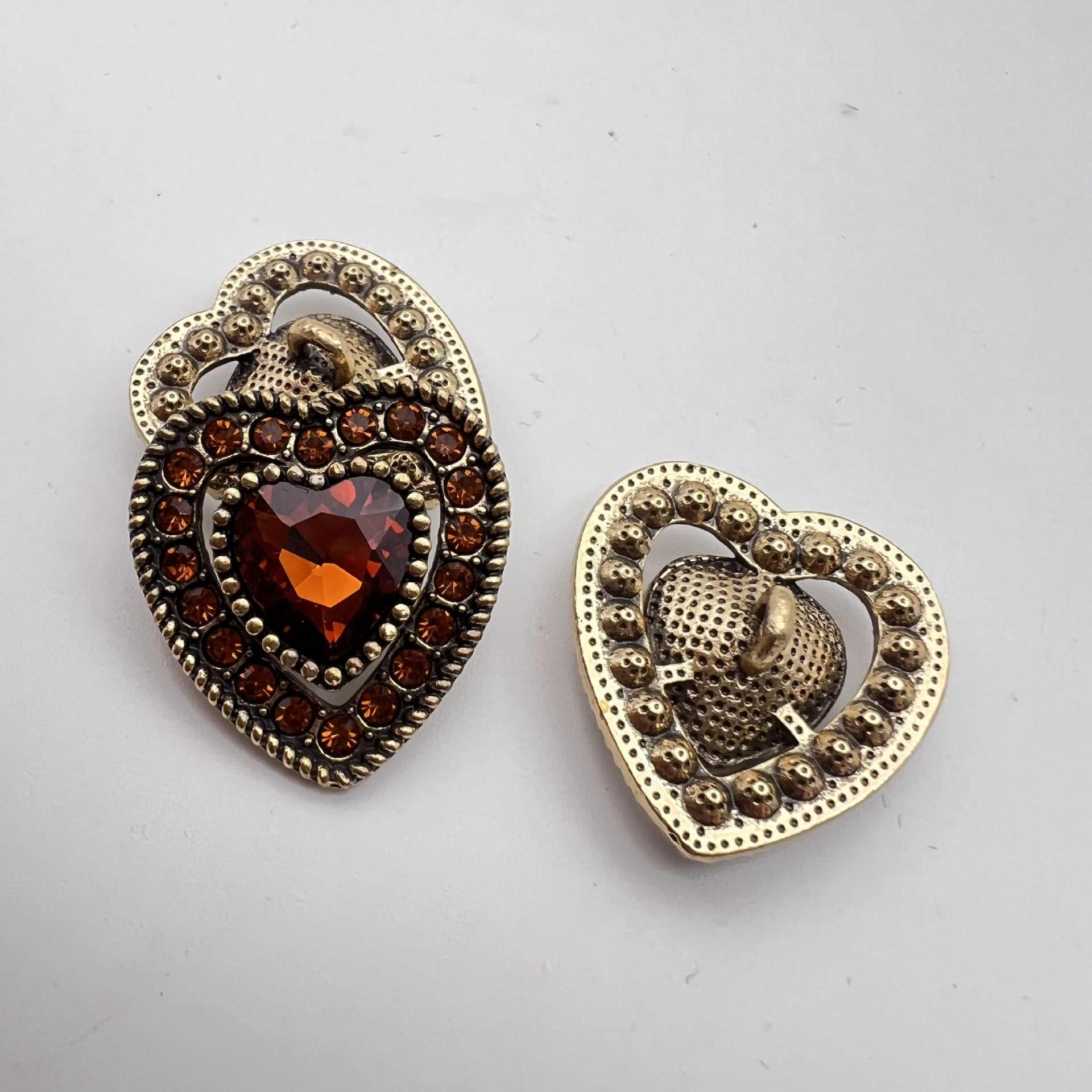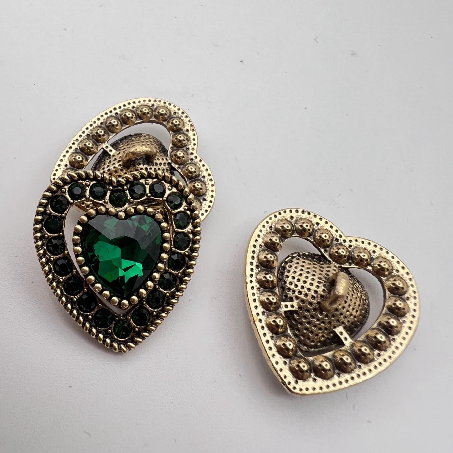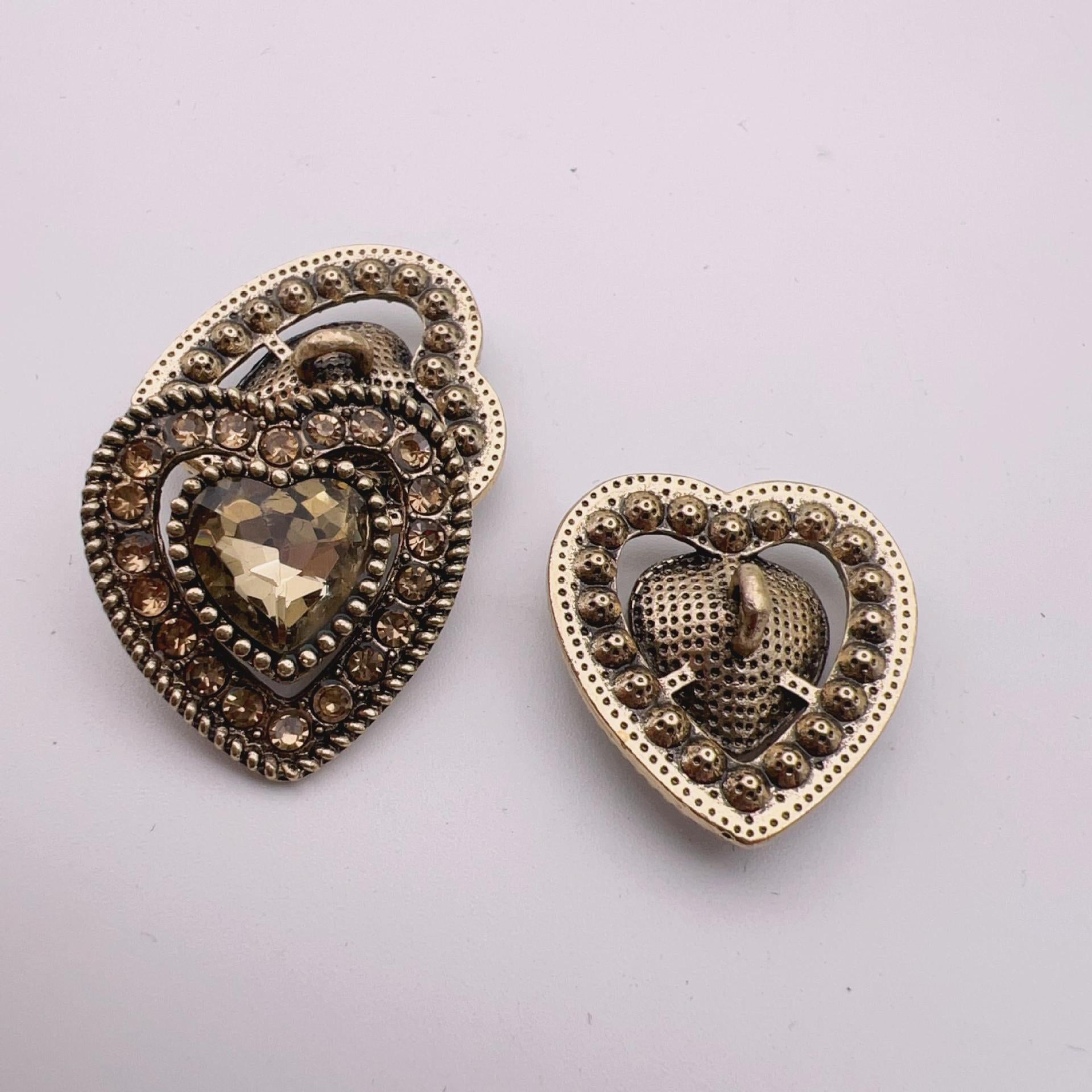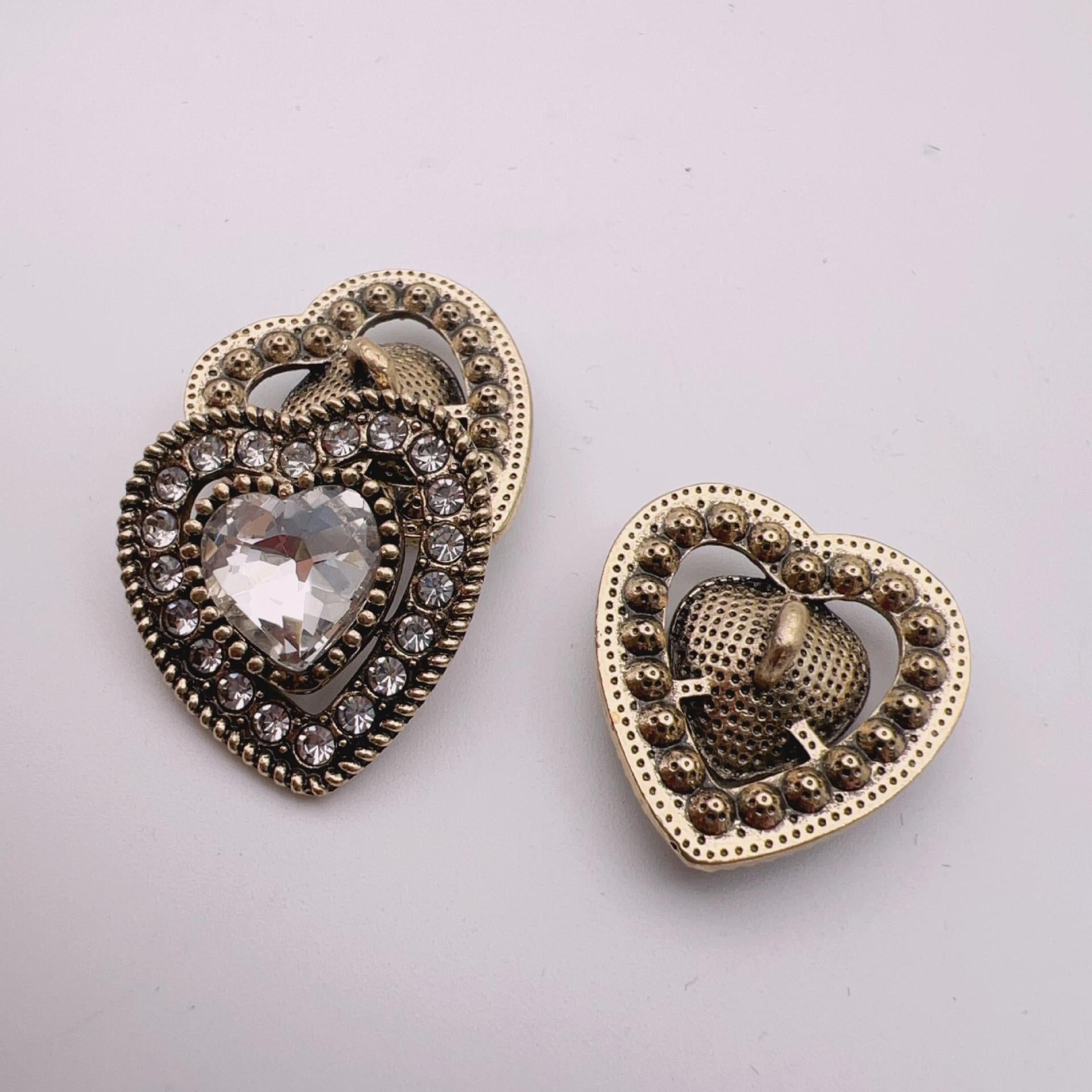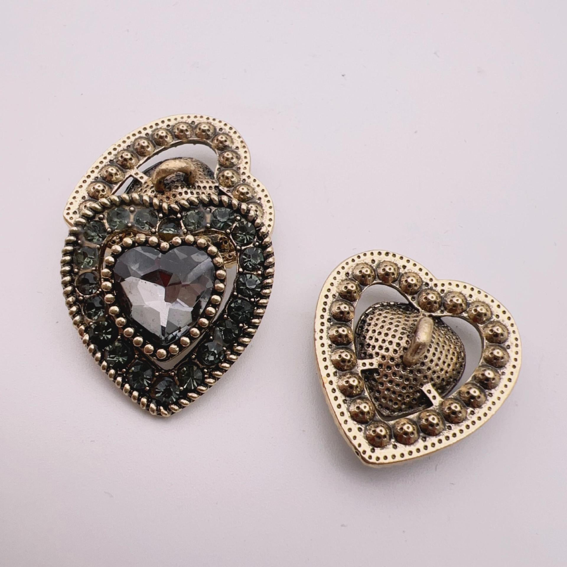 17.5/25mm vintage knoflíky ve tvaru srdce s krystaly a kovovým očkem 10ks