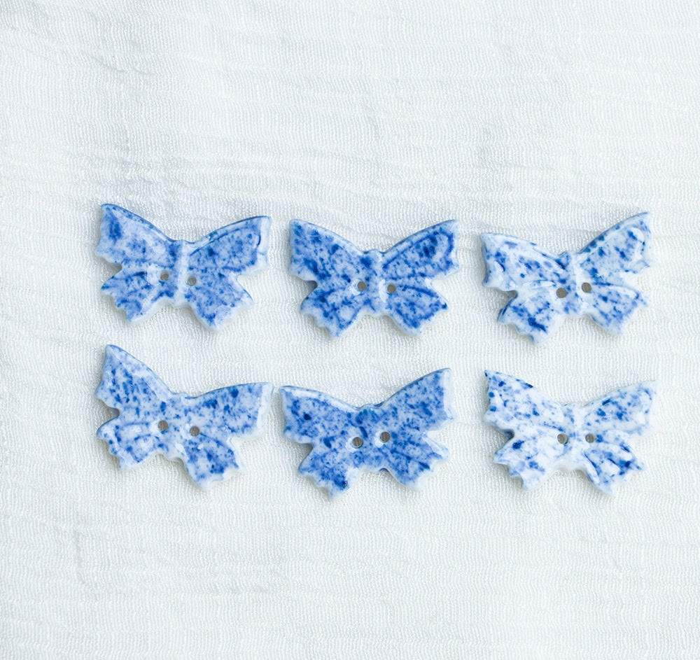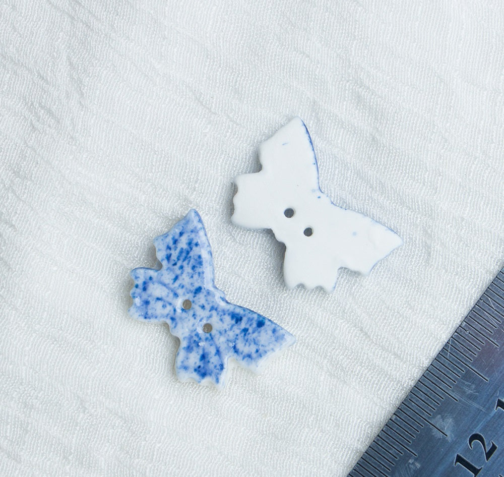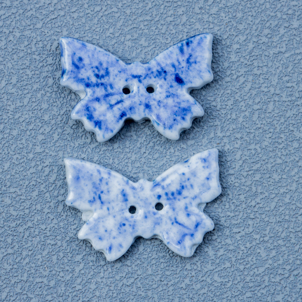 26mm modrobílé motýlí keramické knoflíky s 2 dírkami, ručně vyráběné, 6 kusů