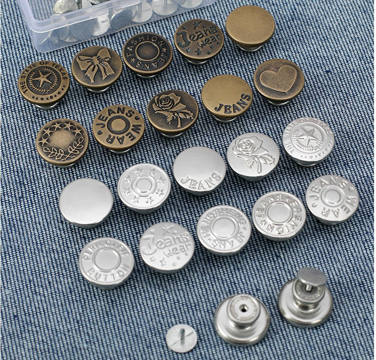 27L Nastavitelné džíny Kovový knoflík Bez nutnosti děrování 100 kusů (20 stylů)