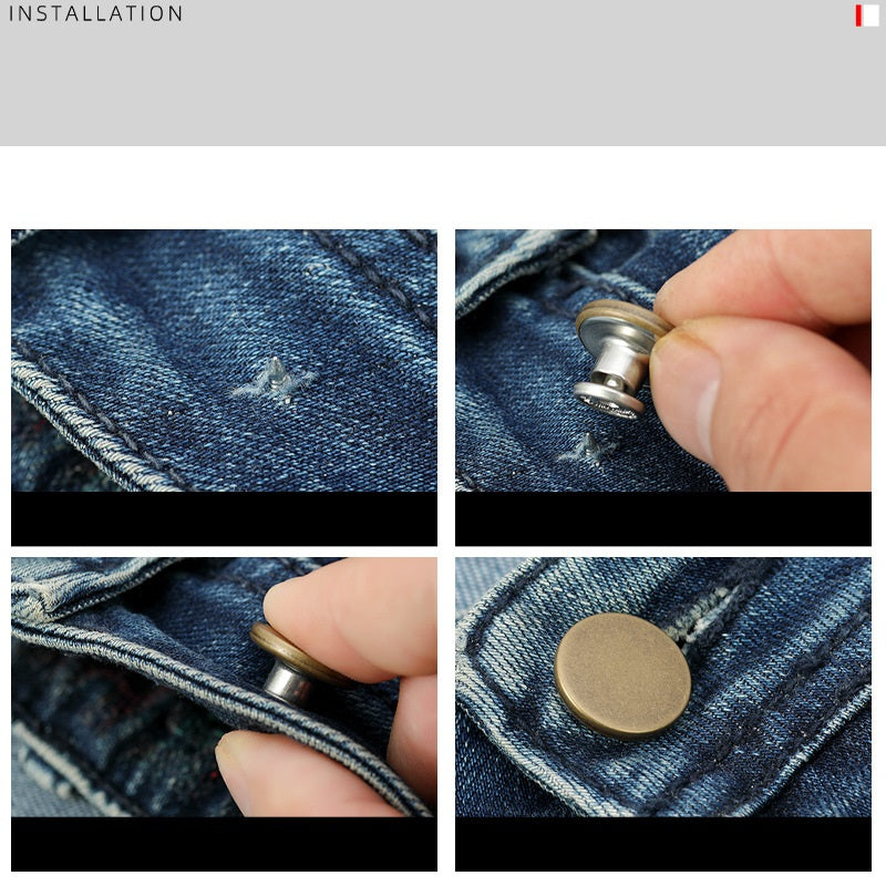 Ať už potřebujete trochu více místa nebo těsnější střih, tento nastavitelný kovový knoflík na džíny v pase je perfektní doplněk. Vylepšete své džíny a užijte si snadno přizpůsobený střih.