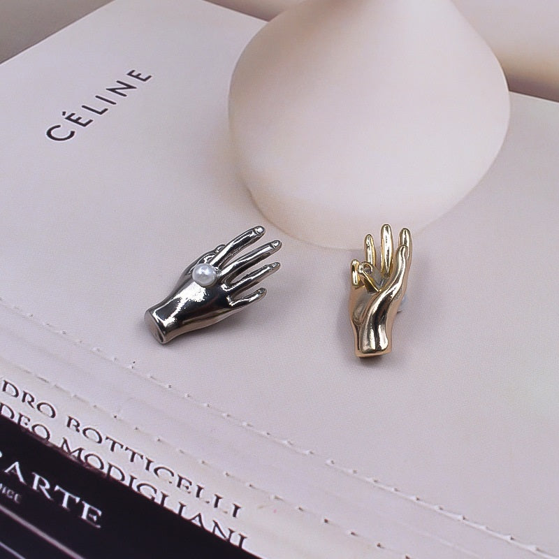 27x13 mm zlaté a stříbrné kovové knoflíky ve tvaru dlaně s perlami – Elegantní zapínání na kabáty a kardigany 20 ks (2 barvy)
