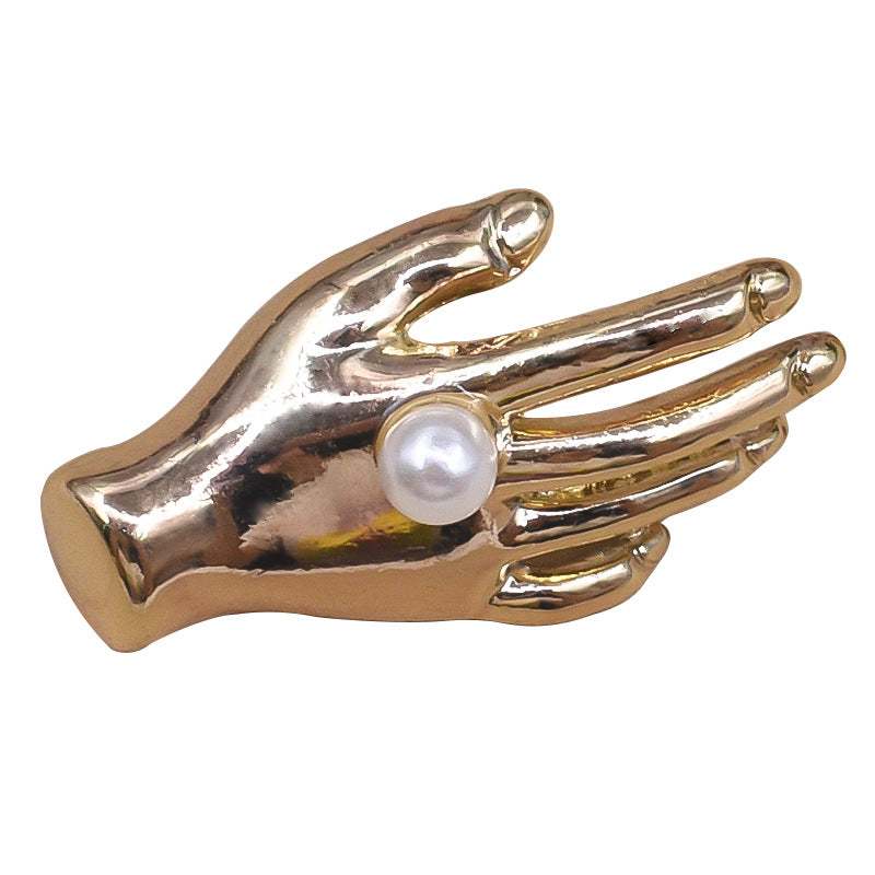 Unikátní ručně vyráběný design – Obsahuje elegantní kovovou základnu ve tvaru dlaně zdobenou kultivovanými perlami, která přidává řemeslný luxus svrchním oděvům.