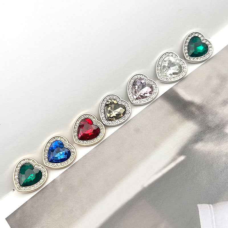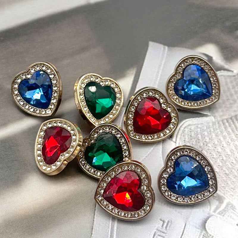 28L/36L Tlačítka s kovovým dříkem ve tvaru srdce s drahokamem pro ženy 10 ks