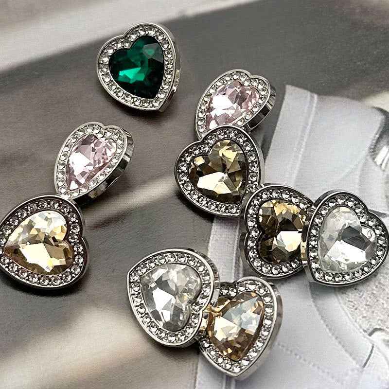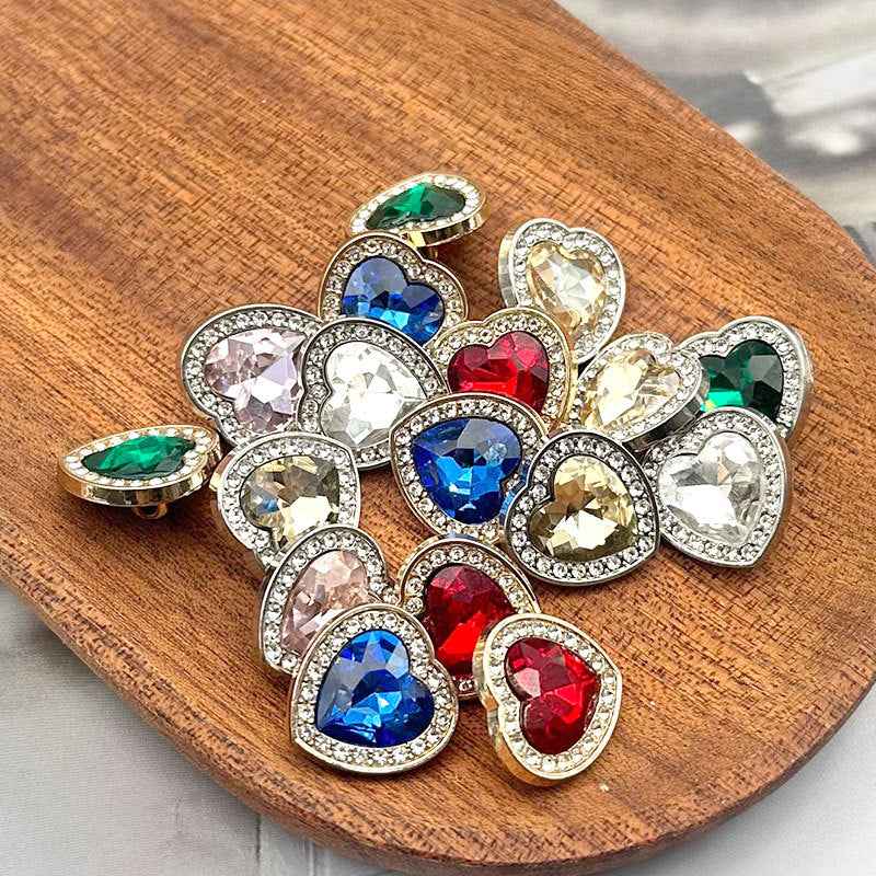 28L/36L knoflíky s drahokamovou stopkou ve tvaru srdce – Třpytivé knoflíky na kabáty pro dámské svrchní oblečení 10ks