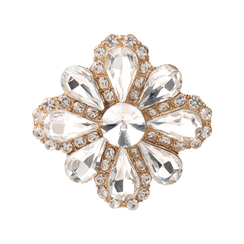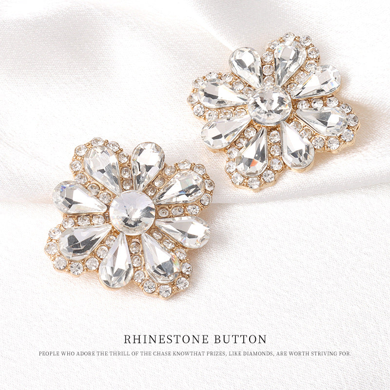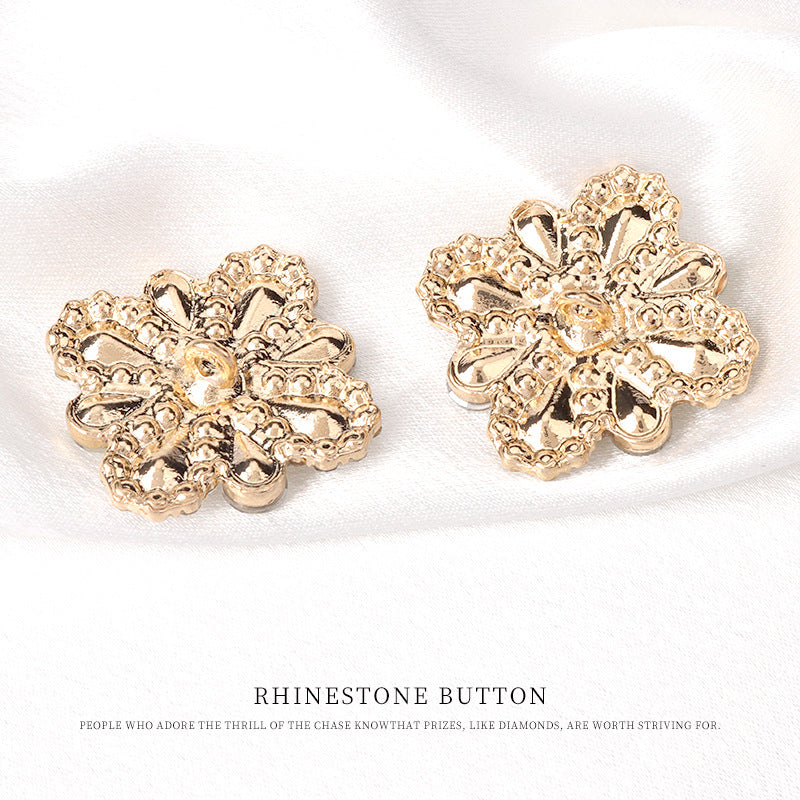 28mm dámské norkové kožešinové knoflíky s krystaly - zlaté kovové knoflíky s okvětními lístky z kamínků 4KS