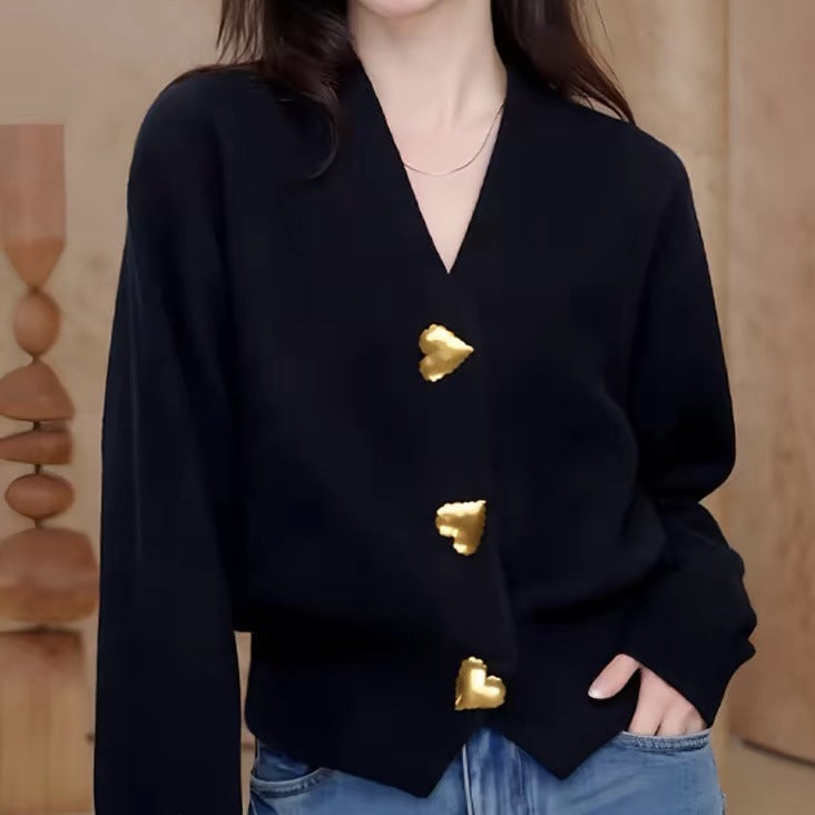 3,8cm Velké kovové knoflíky ve tvaru srdce se starožitnou zlatou úpravou pro kašmírové kabáty a pletené kardigany 6ks