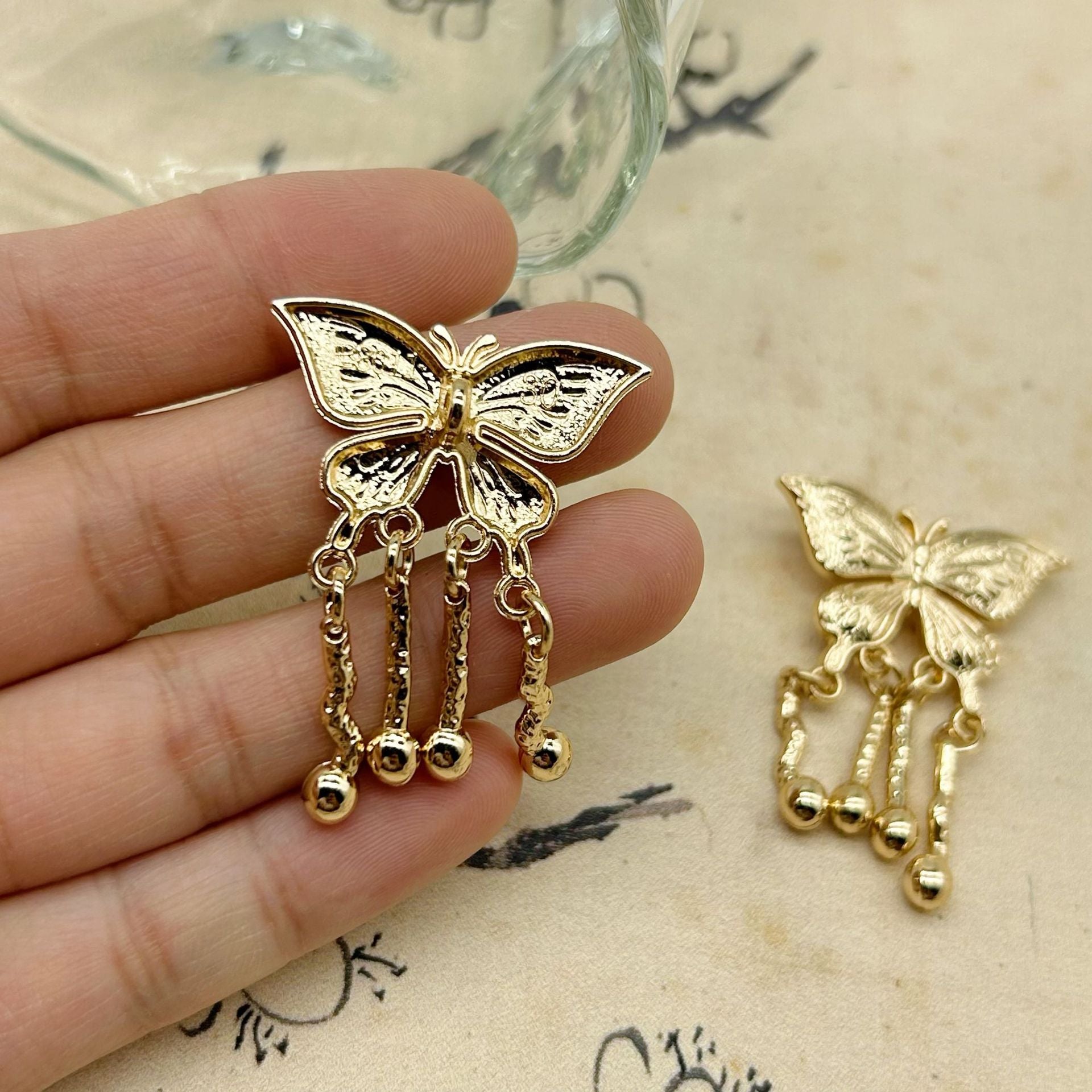 30mm čínský styl zlatý motýl střapec kovové knoflíky s nožkou 12 ks