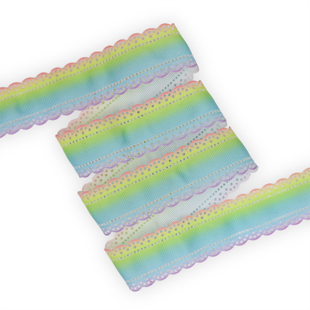 30mm klasická krajková žebrovaná stuha s přechodem 4 barvy 20 yardů (5 yardů na roli)