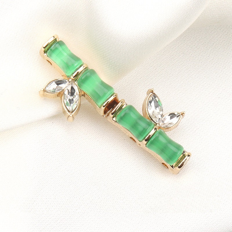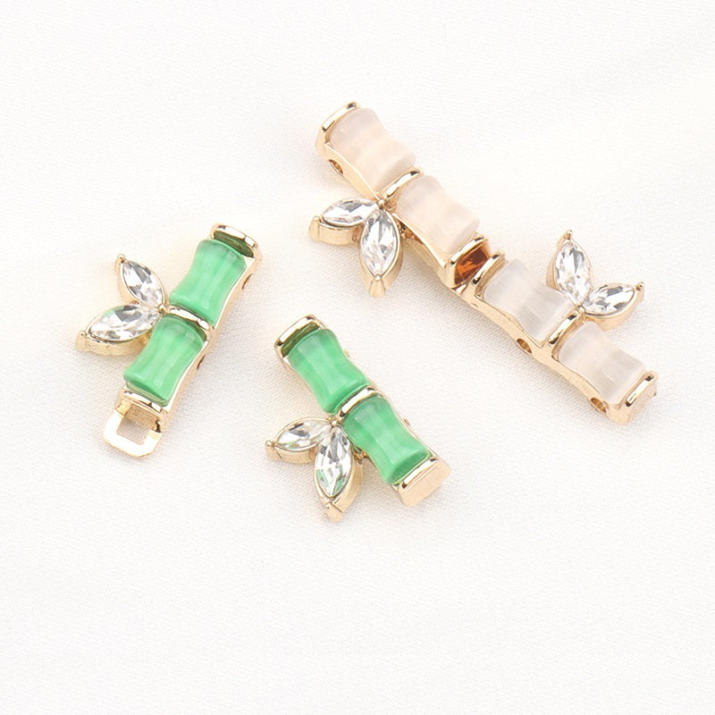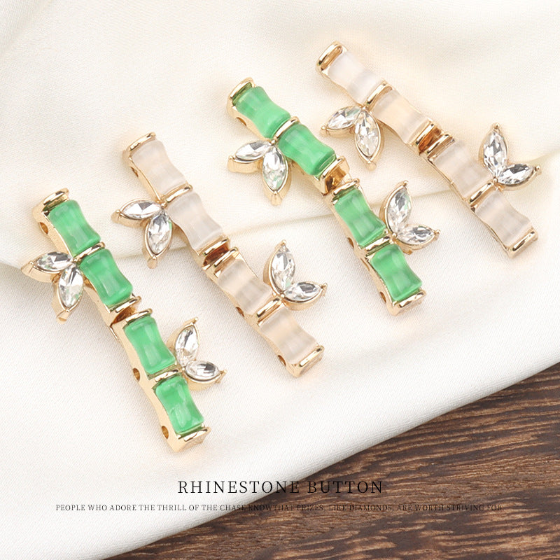 31mm čínské stylové knoflíky z pryskyřice, kovu a diamantů s bambusovým spojem pro Qipao, Hanfu, ručně přišívané knoflíky symbolizující vzrůstání, 4 ks