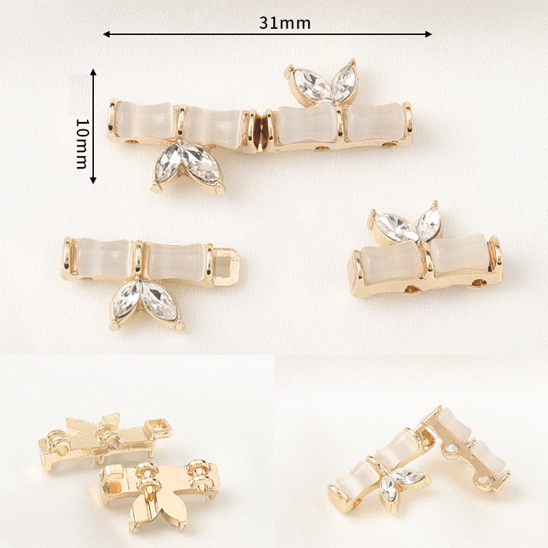 Tyto 31mm knoflíky jsou pozoruhodnou kombinací čínského stylu a jemného řemeslného zpracování. Vyrobené z pryskyřice a kovu, mají krásný design bambusového spoje, který symbolizuje pokrok a prosperitu jako „vzrůstání s každým spojem“. Přidání oslnivých diamantů zvyšuje jejich luxusní vzhled. Ideální pro qipao a Hanfu, přidávají autentický nádech čínské kultury. Kombinace pryskyřice a kovu zajišťuje odolnost, zatímco složité detaily je činí výjimečnými. Ruční přišívání těchto knoflíků na vaše tradiční oděvy zvýrazní jejich jedinečné kouzlo. Nejsou to jen zapínadla, ale také umělecká díla, která vyprávějí příběh čínského dědictví, díky čemuž je vaše oblečení skutečně výjimečné a poutavé.