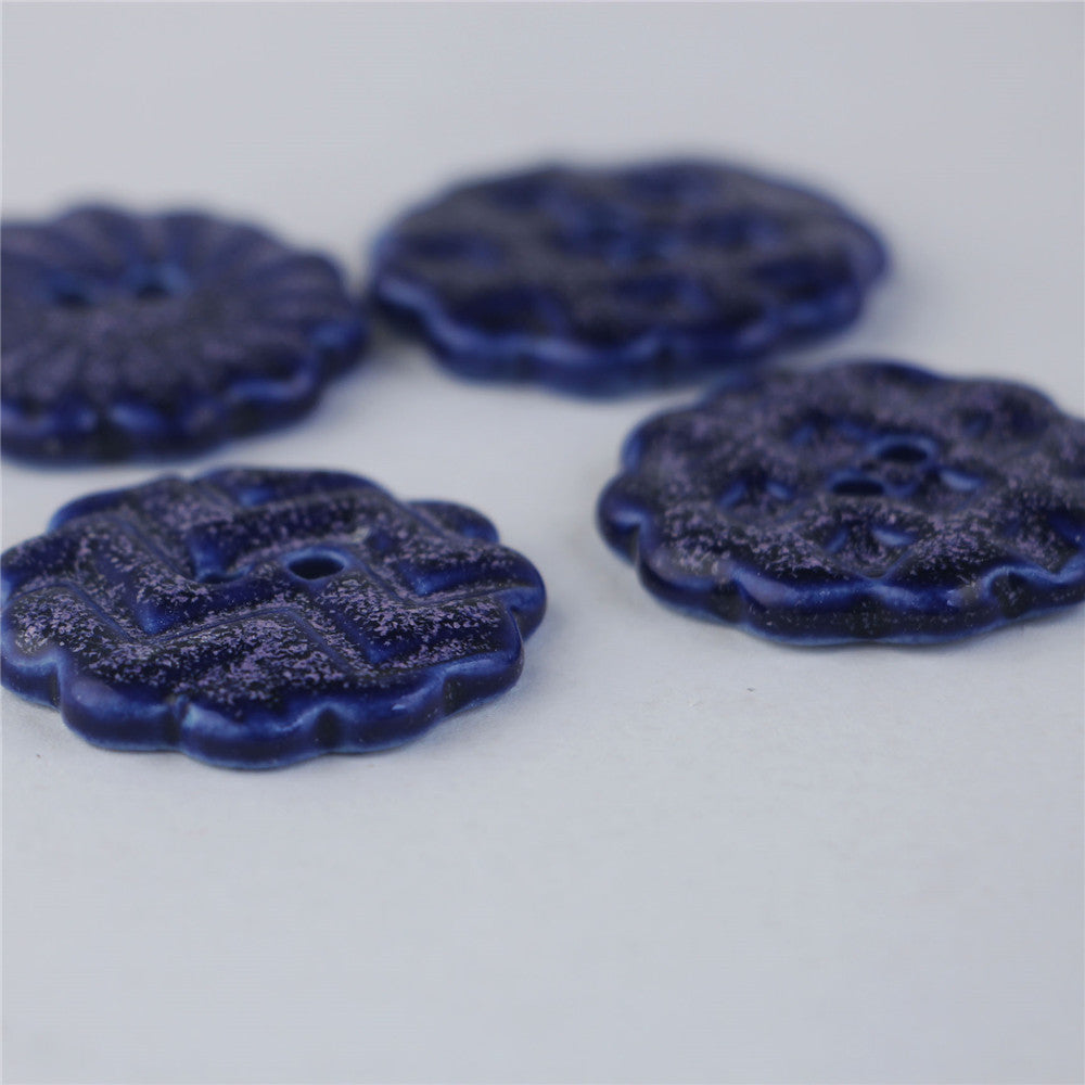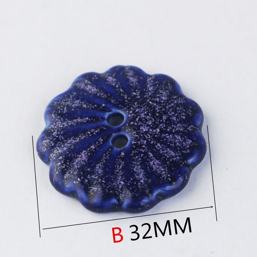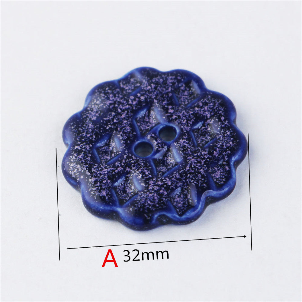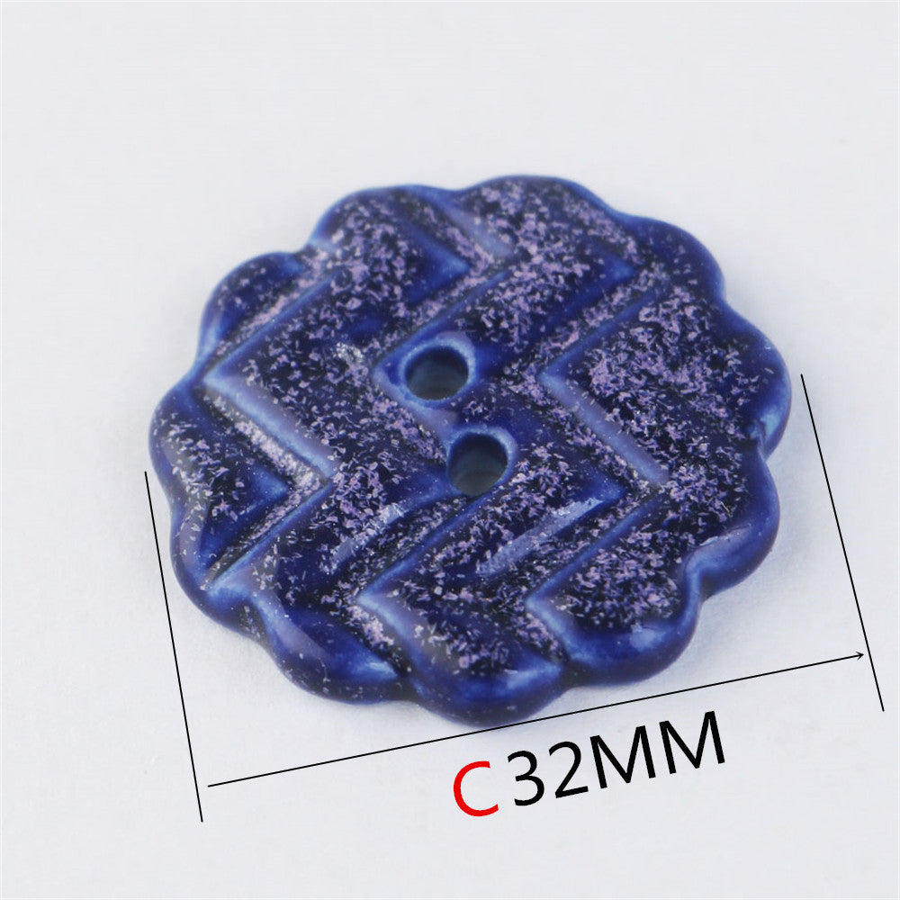 32mm modré keramické ručně vyráběné knoflíky ve tvaru ozubeného kola se 2 dírkami, 3 kusy