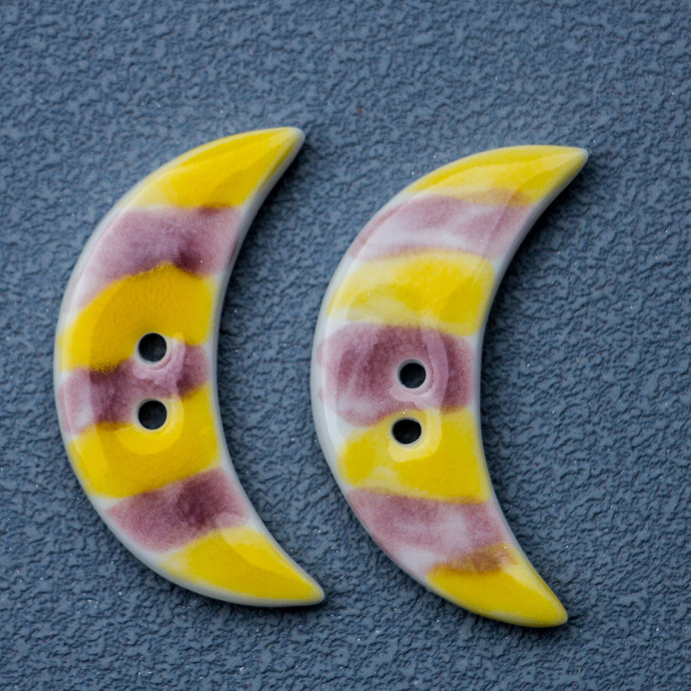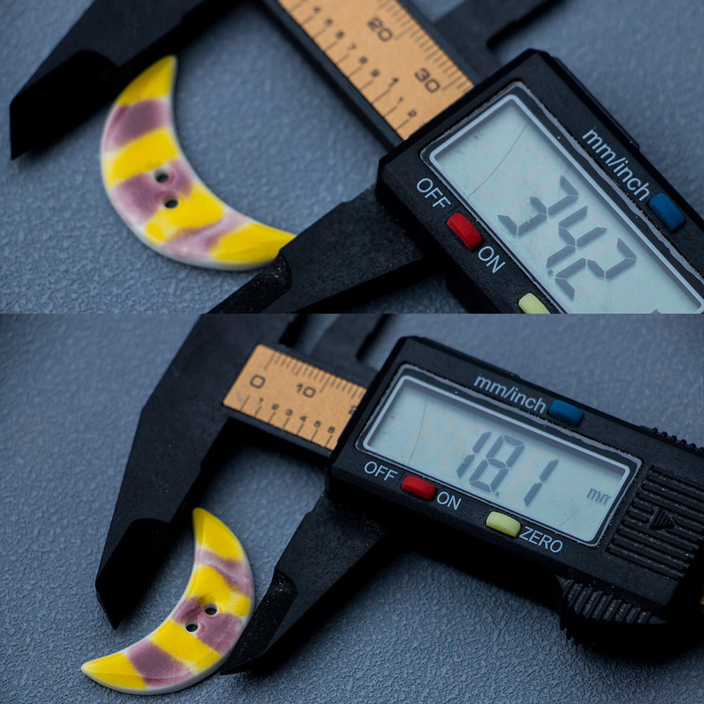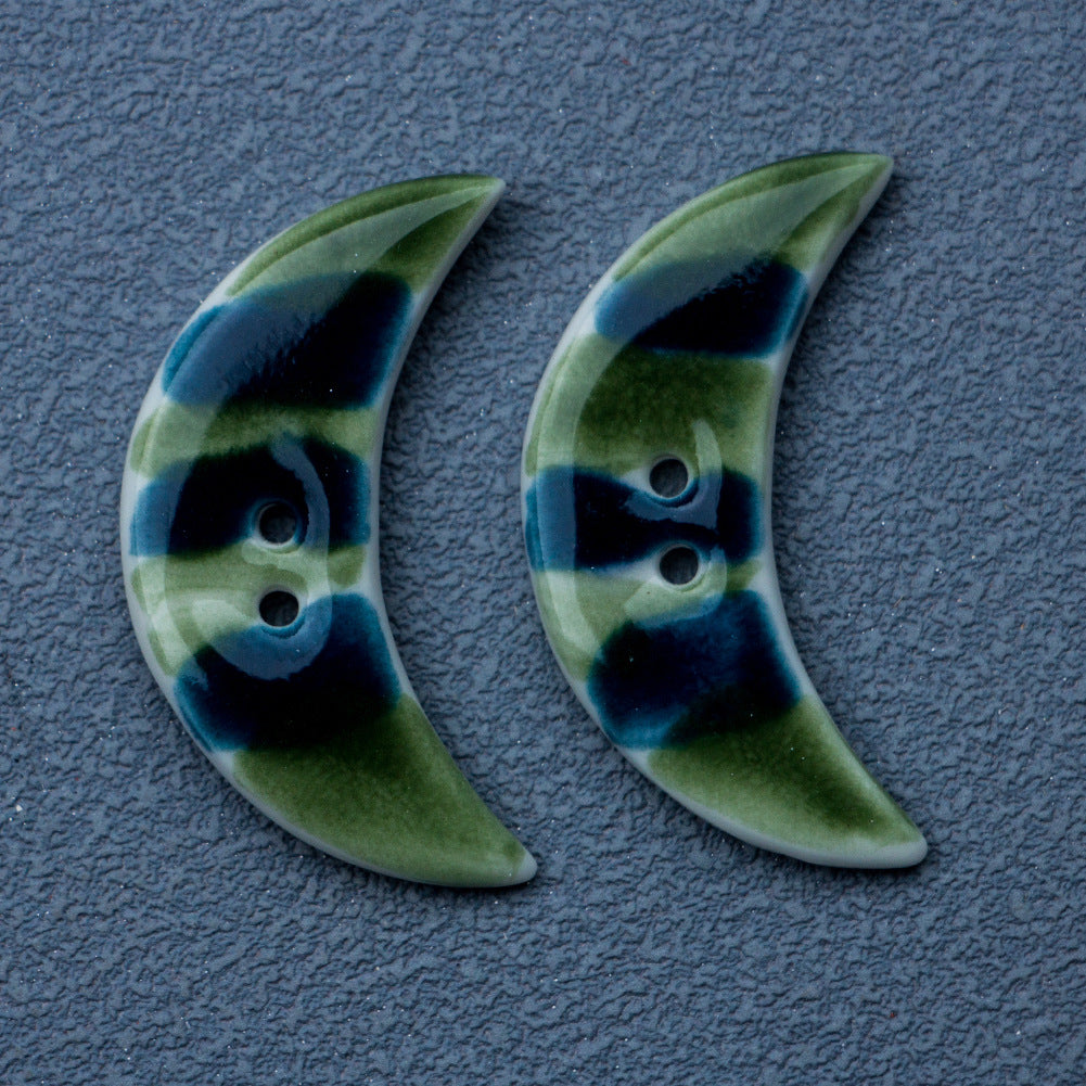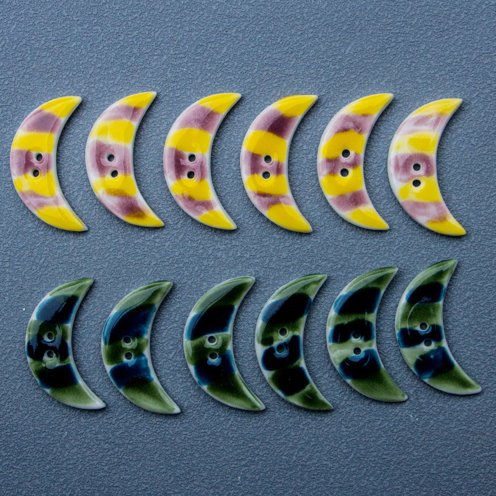 Tyto 34mm keramické knoflíky ve tvaru zelených a žlutých půlměsíců jsou jedinečným nálezem pro DIY šperky. Kombinace barev a tvaru půlměsíce dodává poutavý a mystický vzhled.