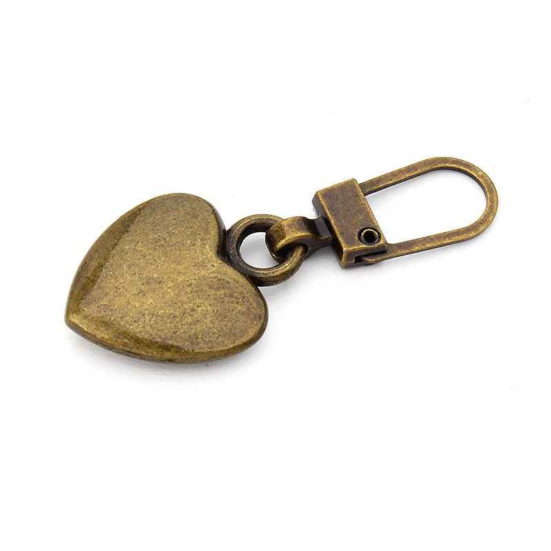 39mm x 16,5mm univerzální odnímatelný kovový jezdec na zip ve tvaru srdce - černá/stříbrná/zlatá/kovová/bronze (5 barev) - náhradní jezdec na zip pro bundy, tašky a opravy 12KS
