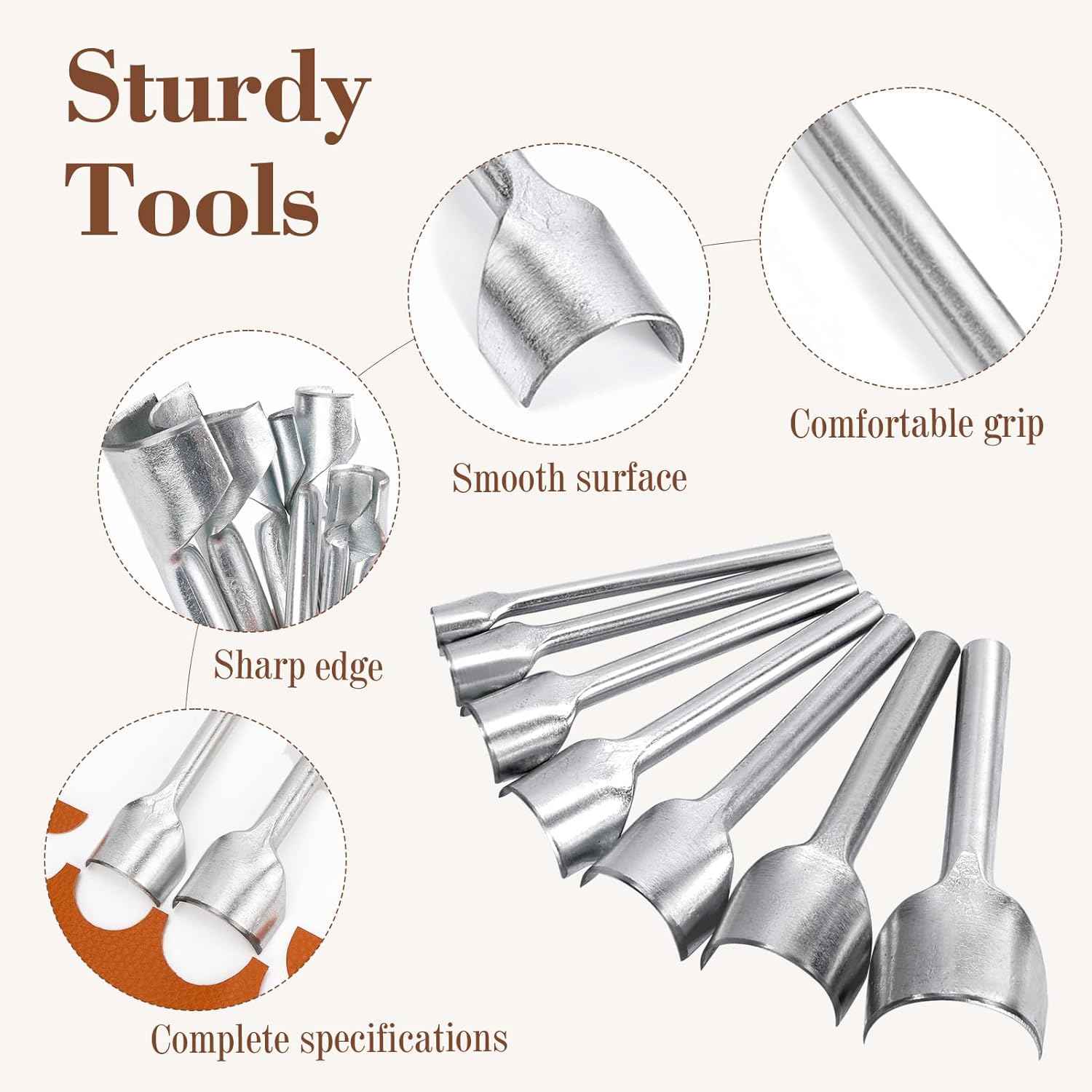 7dílná sada nástrojů pro kožené řemeslo Polokruhový děrovač Obloukový řezák kožených hran pro výrobu řemínků, opasků, peněženek a tašek DIY ruční práce 10-40mm