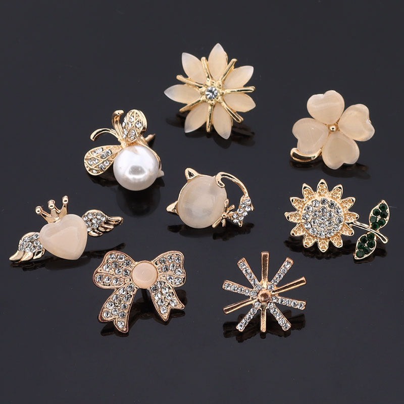 Vynikající vysoce kvalitní zlaté brože pro letní dekoraci - slunečnice, mašle, sněhové vločky, včely, kočky, andělé, květiny a čtyřlístky 8 kusů (8 stylů)