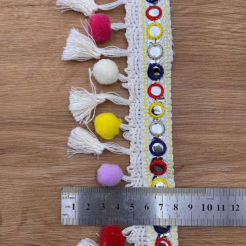 Vylepšete své boho-šik výtvory touto úchvatnou 8CM širokou etnickou vyšívanou žakárovou stuhou! Tato luxusní stuha obsahuje složitou etnickou výšivku na prémiové žakárové tkanině, zdobenou ručně přišitými barevnými korálky a hravým třepením z bambulek pro mimořádnou texturu a pohyb.