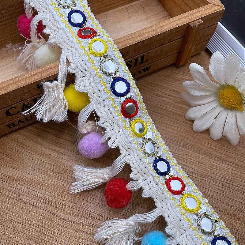 8CM široká etnická vyšívaná žakárová stuha s korálkovým třepením - barevná bohémská DIY řemeslná stuha 10 yardů