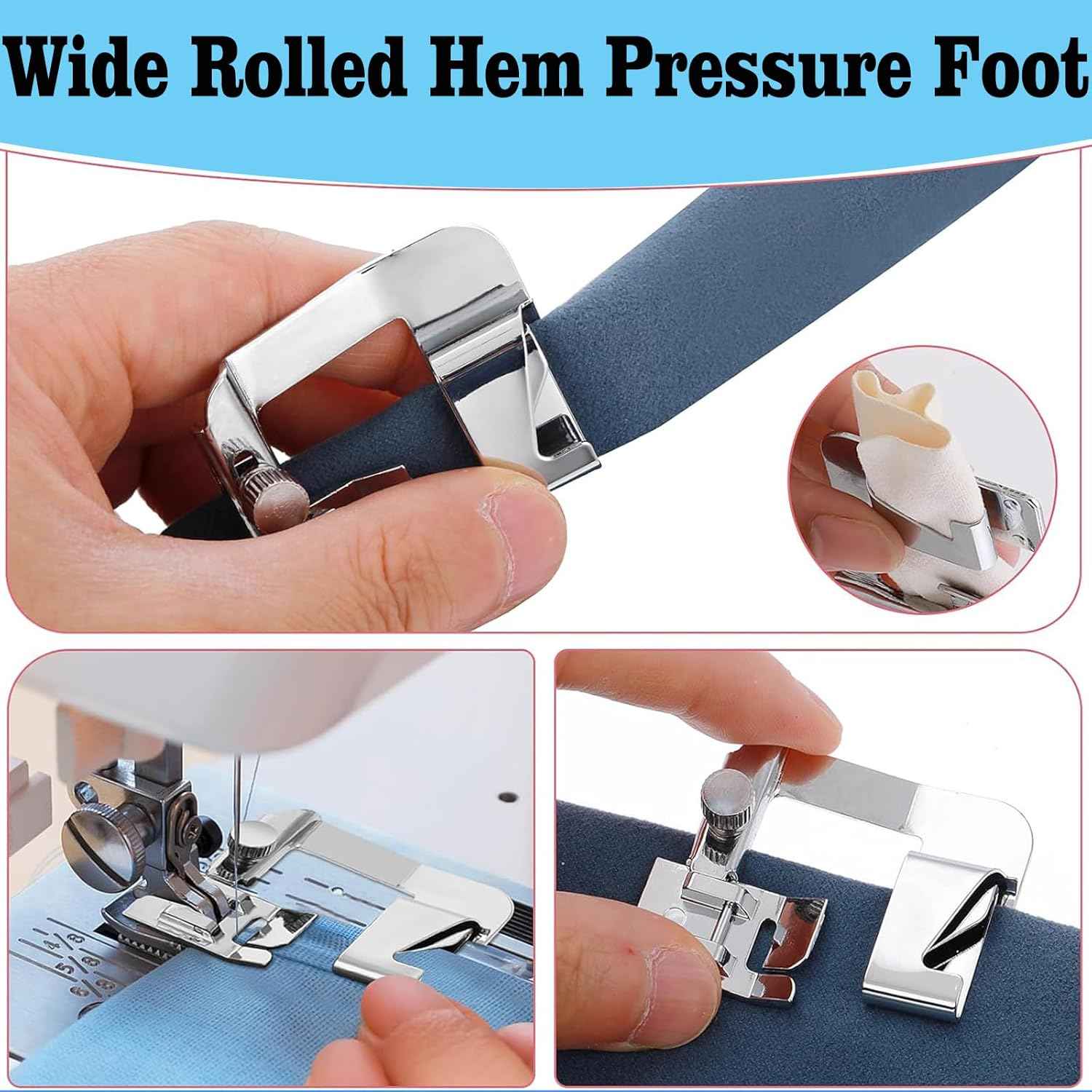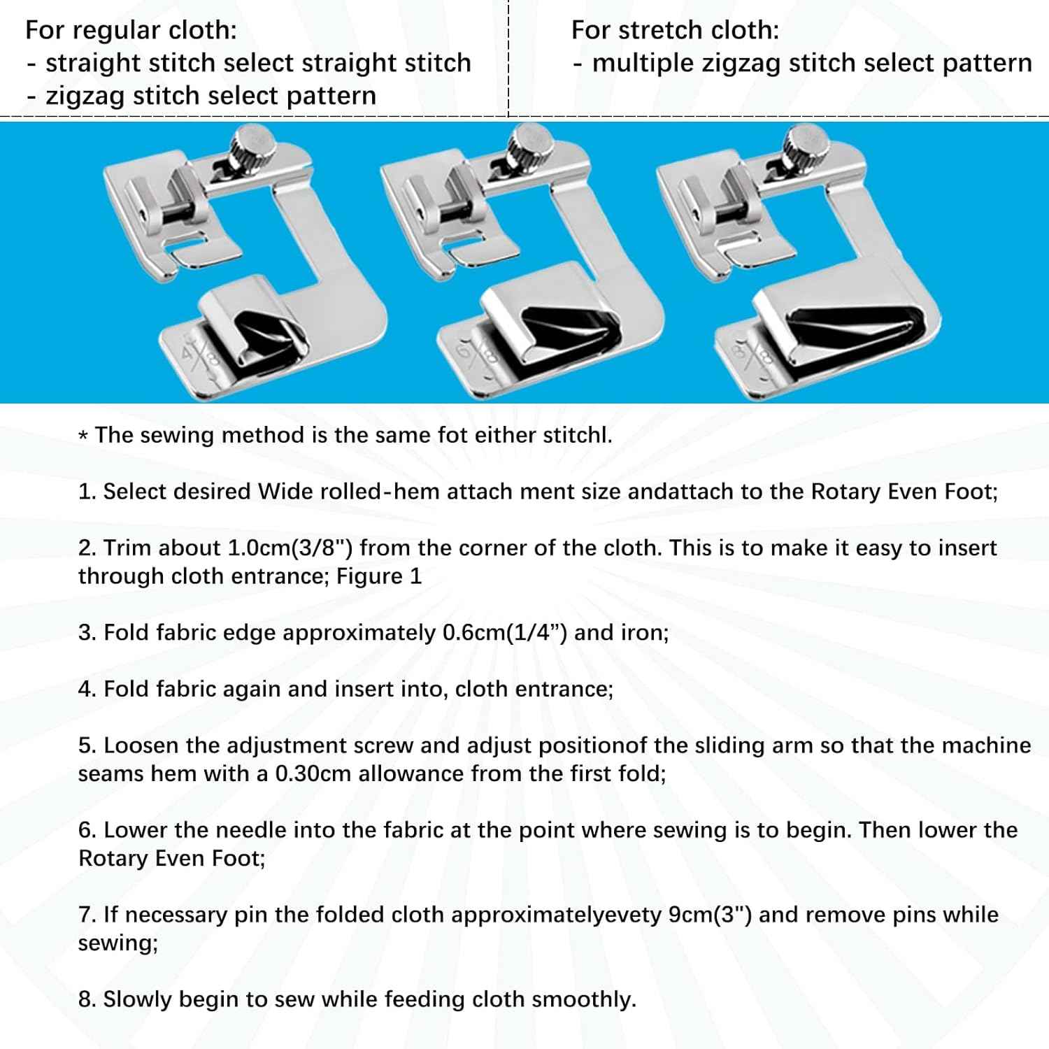 Patka pro rolovaný lem: Široce používaná na oděvech a lehkých látkách, kompatibilní se stroji Singer, Brother, Janome, Kenmore, Babylock, Elna, Toyota, New Home, Simplicity a dalšími domácími šicími stroji s nízkým ramenem, NE pro průmyslové a MINI šicí stroje.