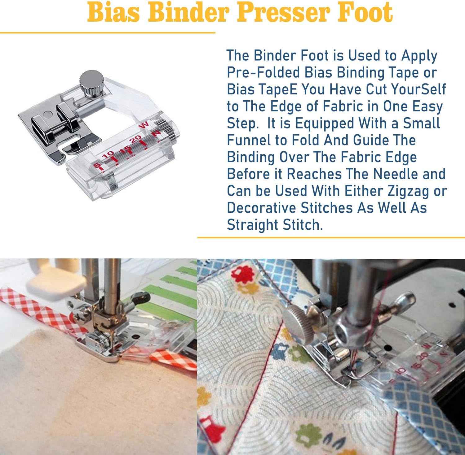 Nastavitelná patka pro šikmý proužek: Rozsah od 5 mm do 20 mm. Můžete šít jakoukoli velikost okraje v nastavitelném rozsahu. Stačí změnit směr otáčení.