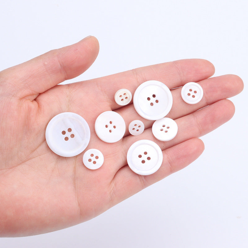 9-25mm kulaté 4-dírkové bílé perleťové knoflíky pro košile a obleky, balení 90 kusů